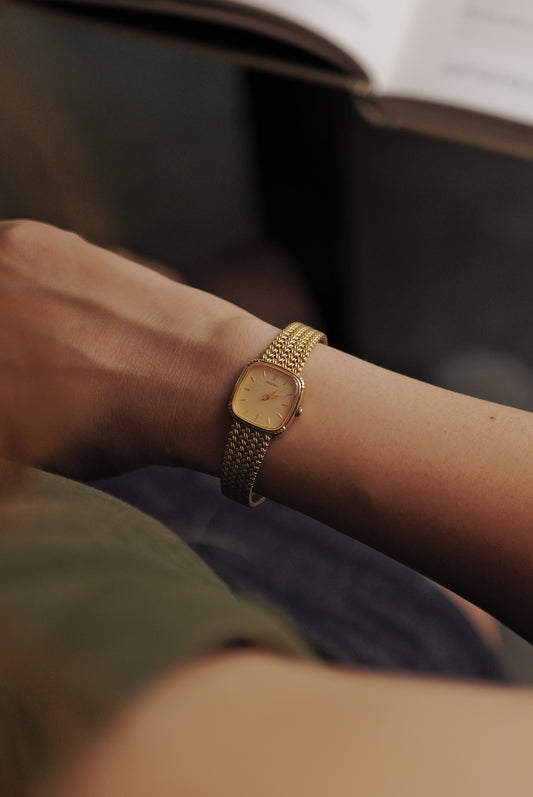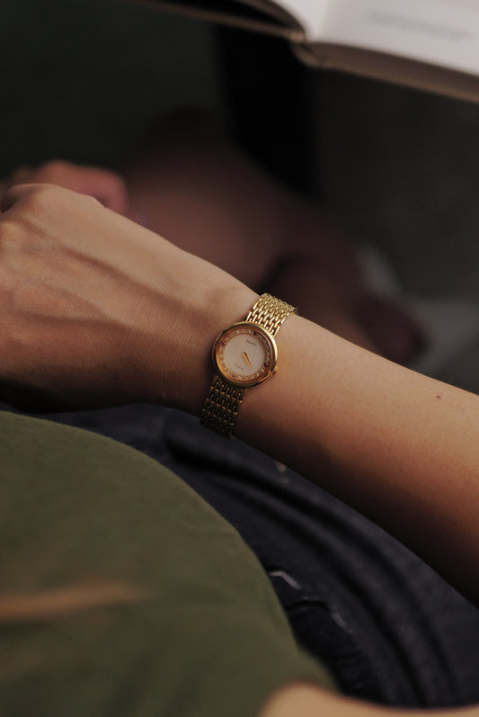 • Seiko Exceline Mother of Pearl dial Tear-drop Bracelet in Gold Circa. 1989