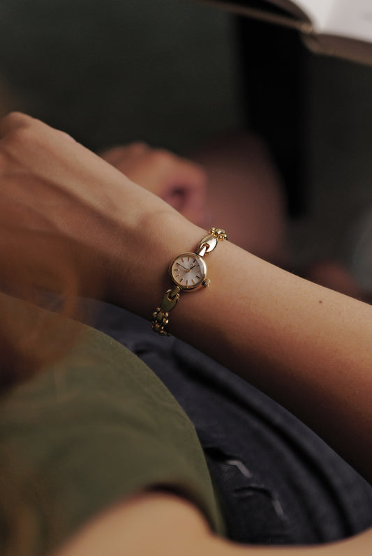 • Seiko Exceline Mother of Pearl dial Tear-drop Bracelet in Gold Circa. 1989
