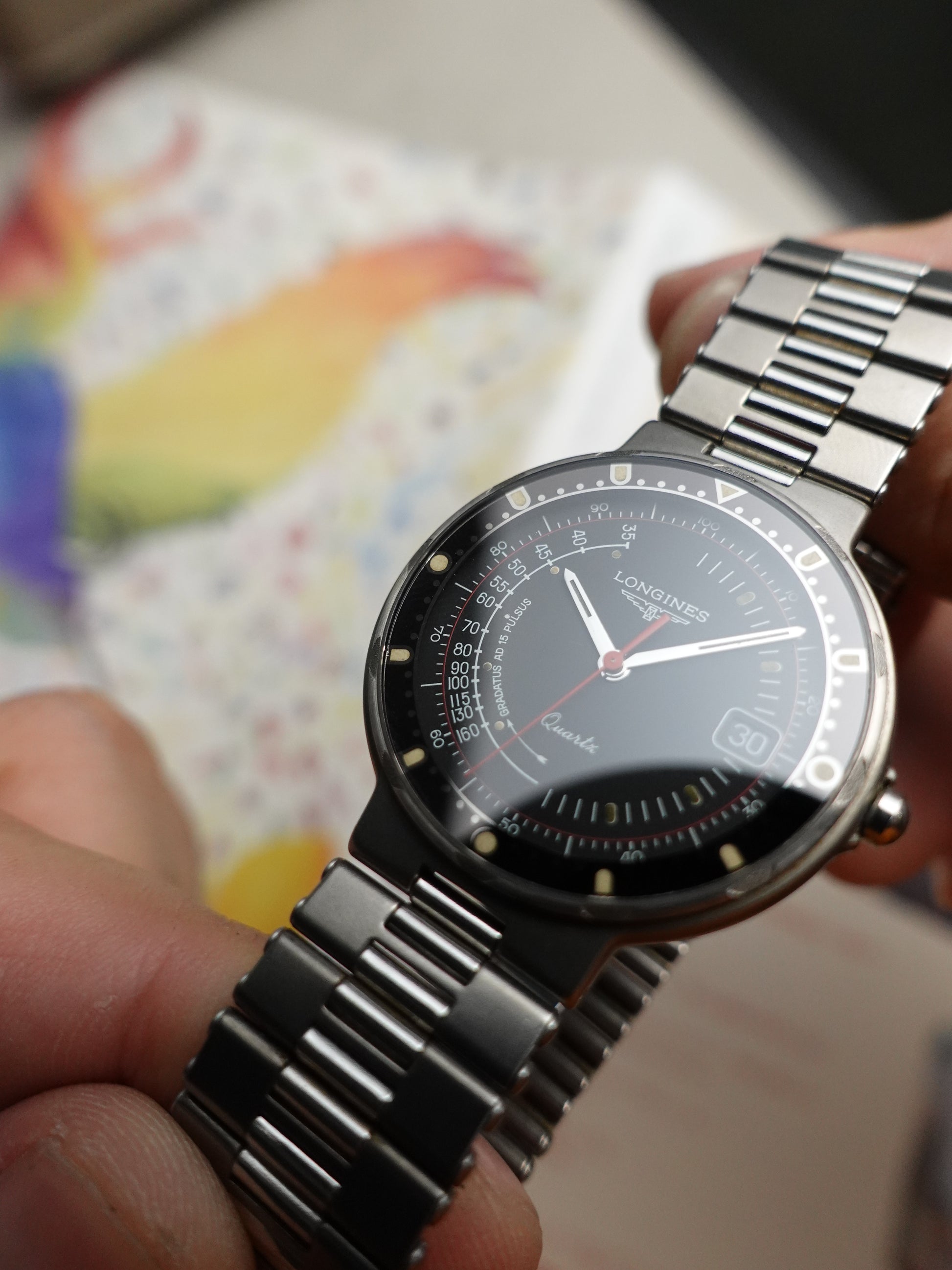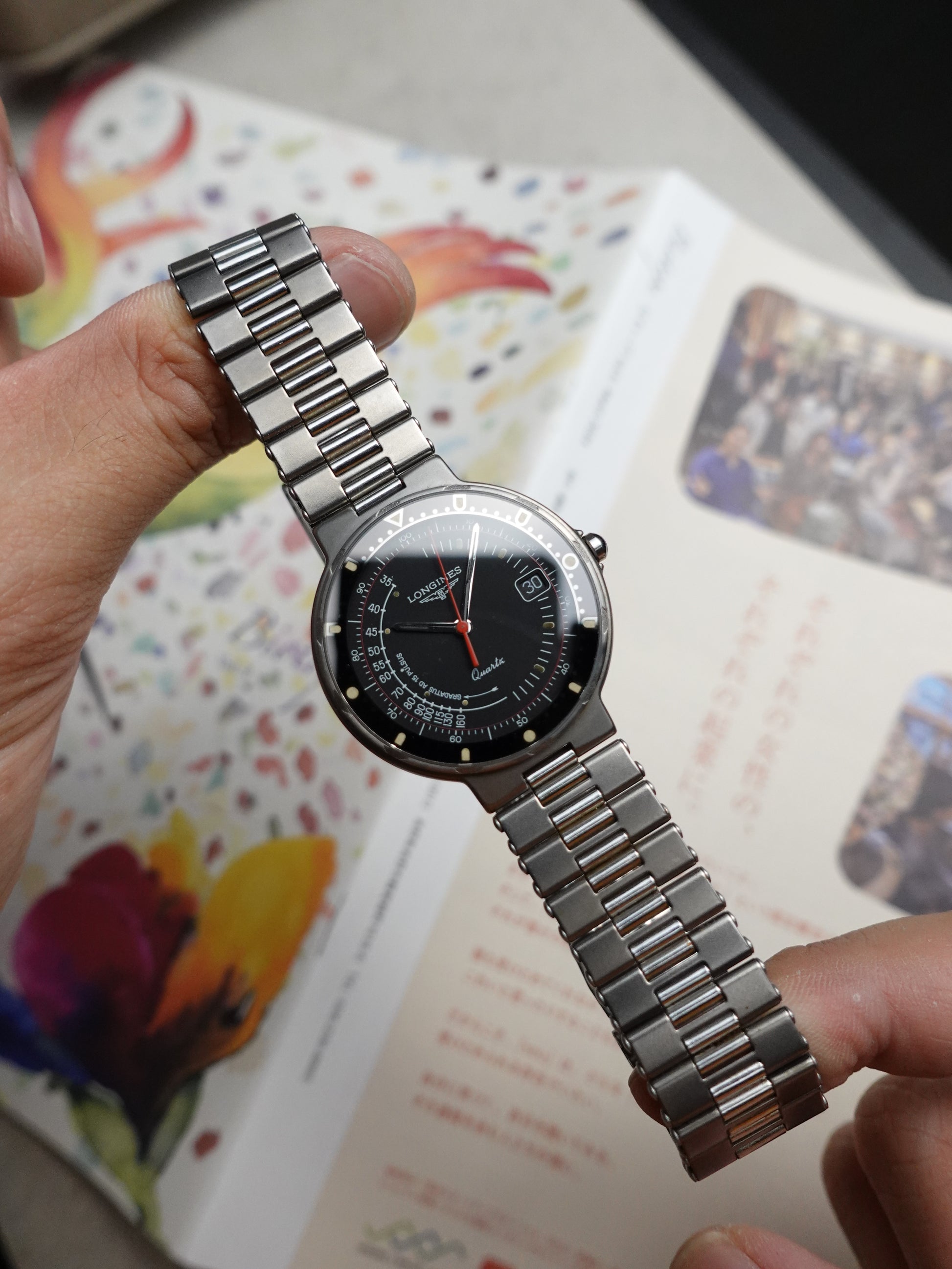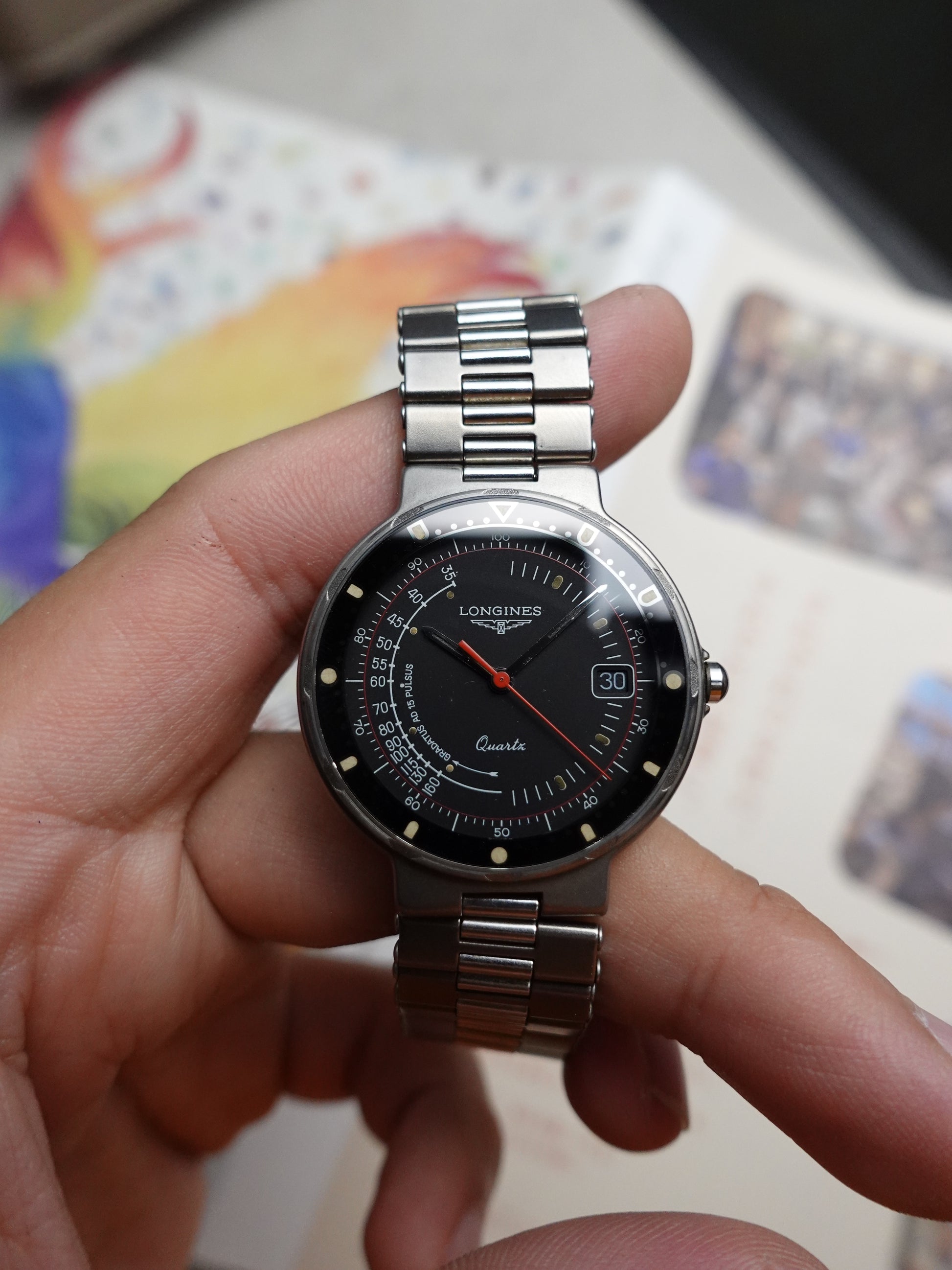 A very unique Longines conquest from the 80s. comes with a pulse-meter dial which is used to read heartbeat rate, usually used by doctors in emergency situations.