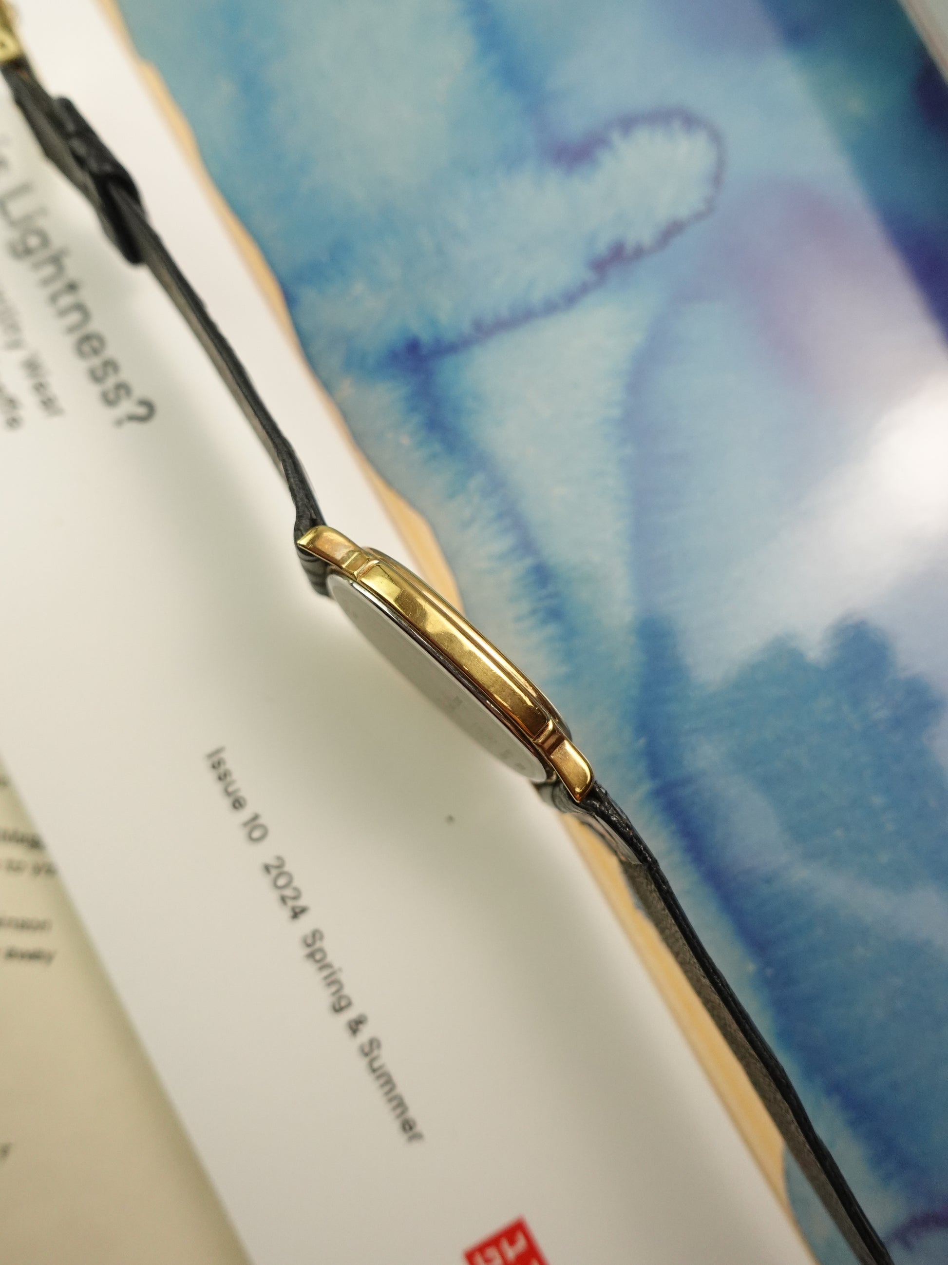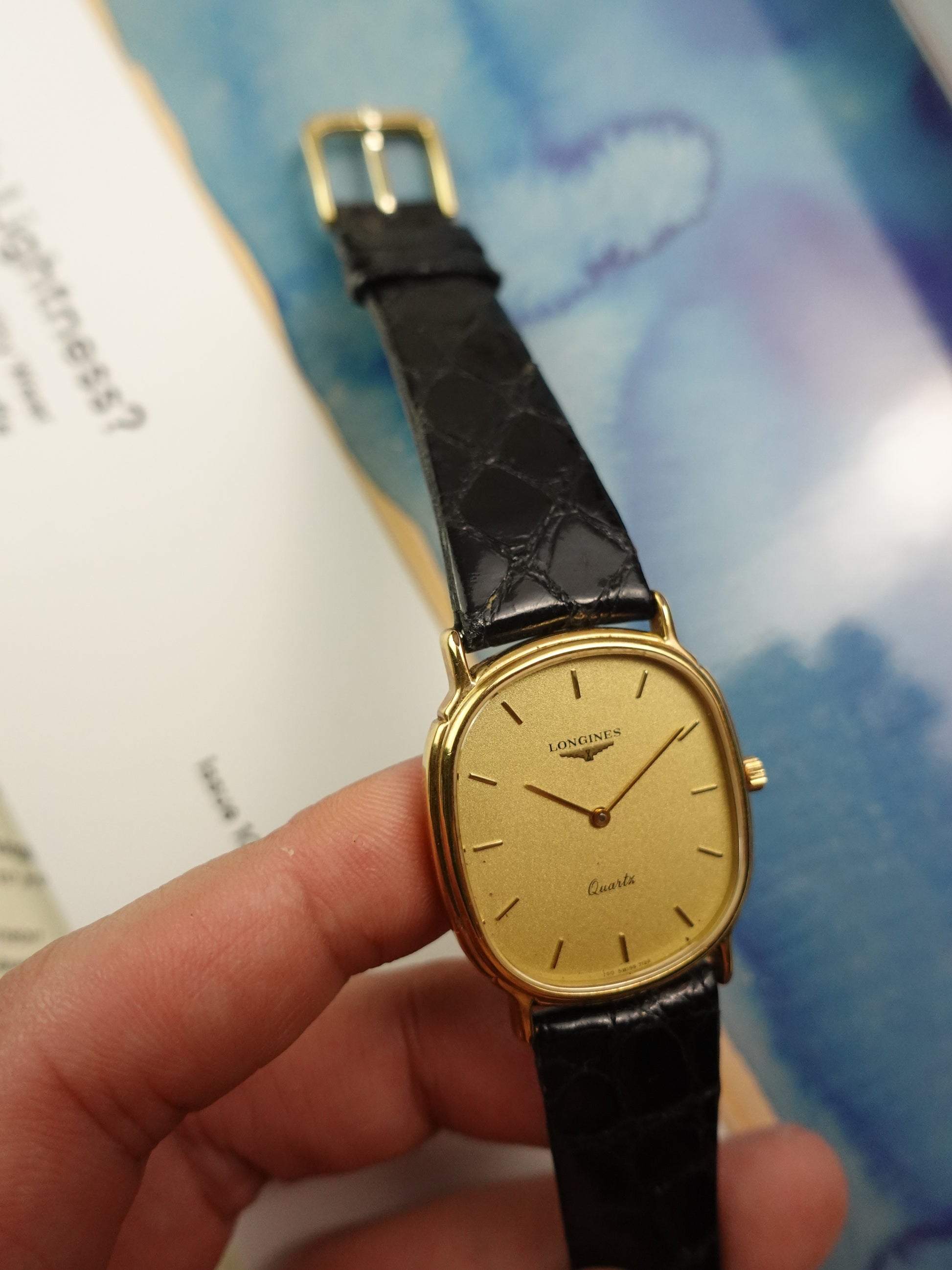 with the rise of the patek Elipse, vintage oval shape watches have been dominating the market for the past 6 months. a very beautiful longines example right here, with a vintage croc skin. marked as an 80s watch as it was before longine started using sunburst dials.
