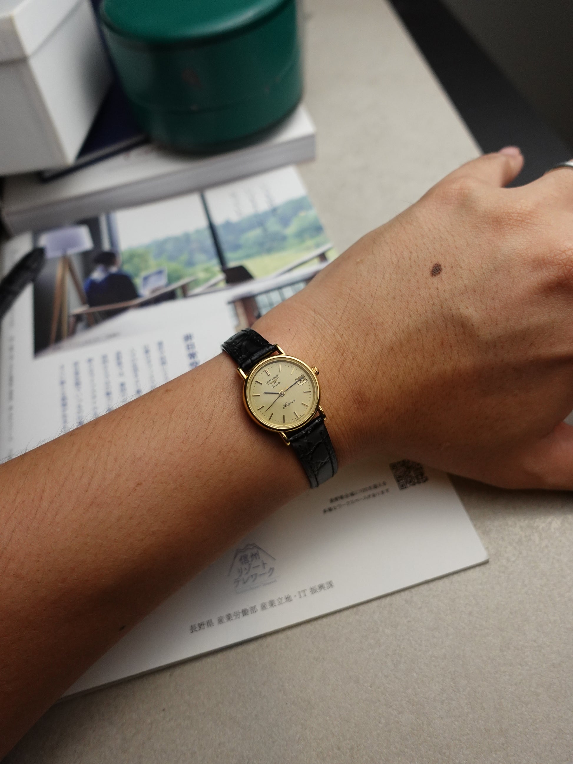 a ladies longines with its original box, and buckle.