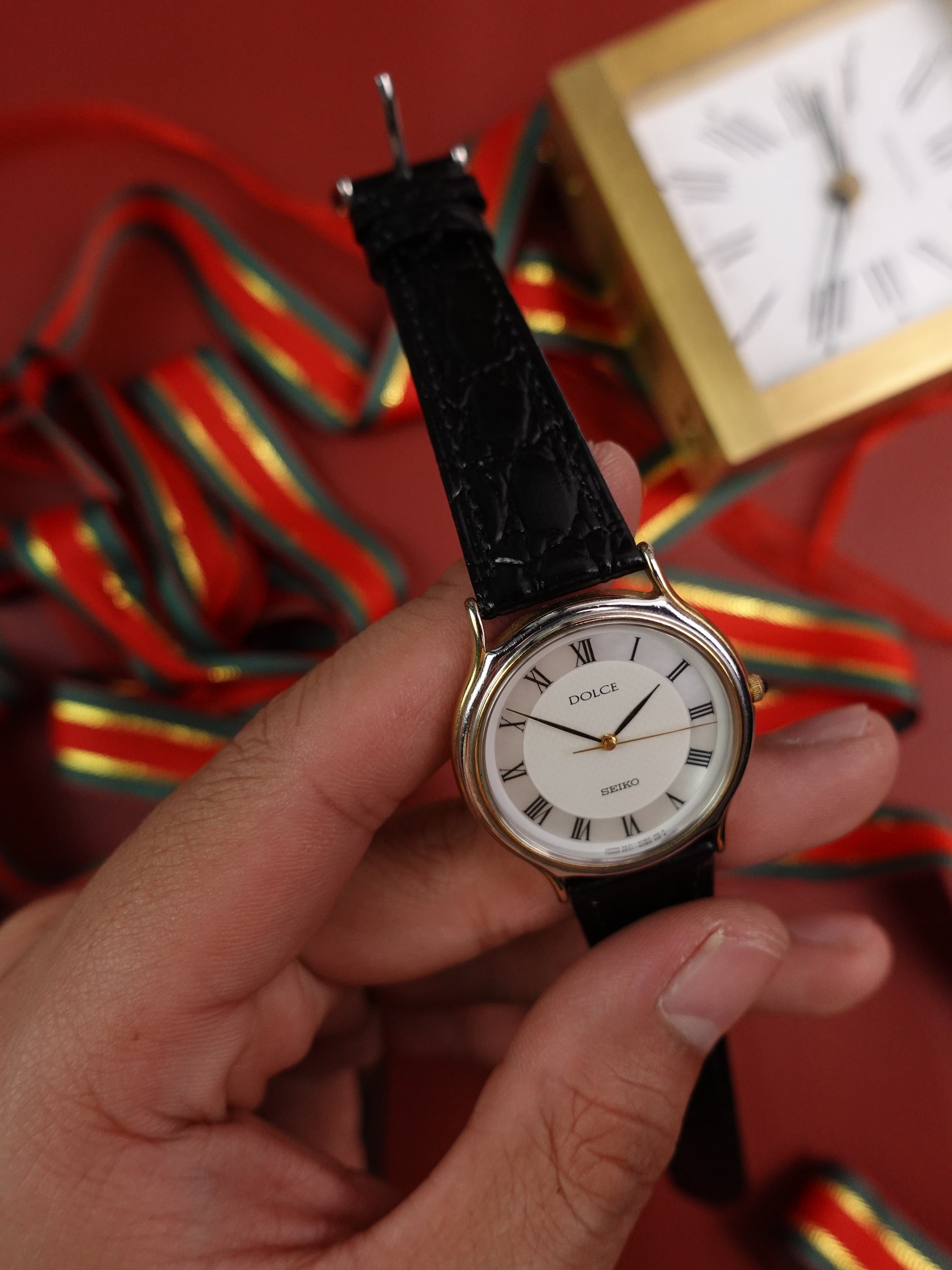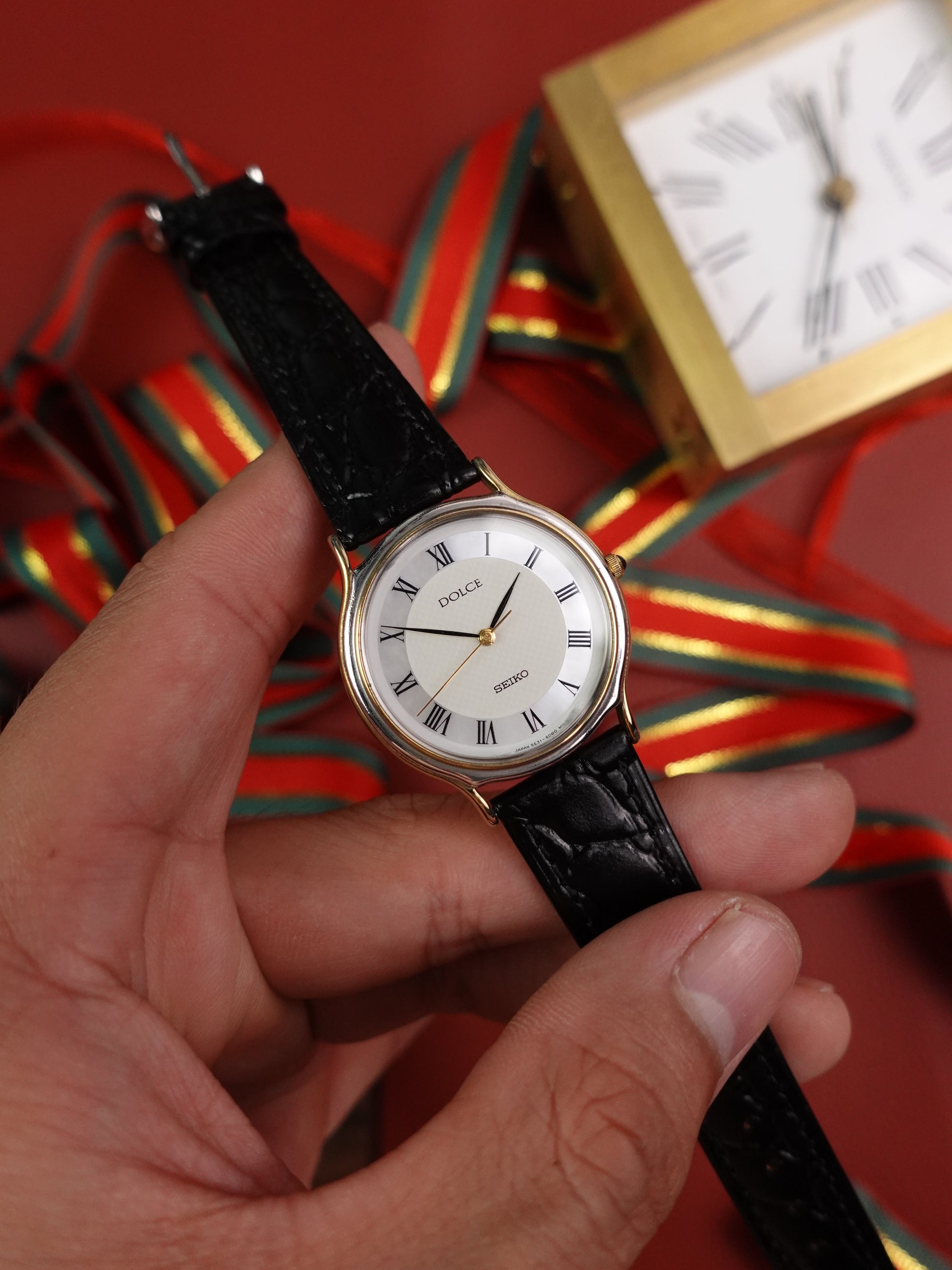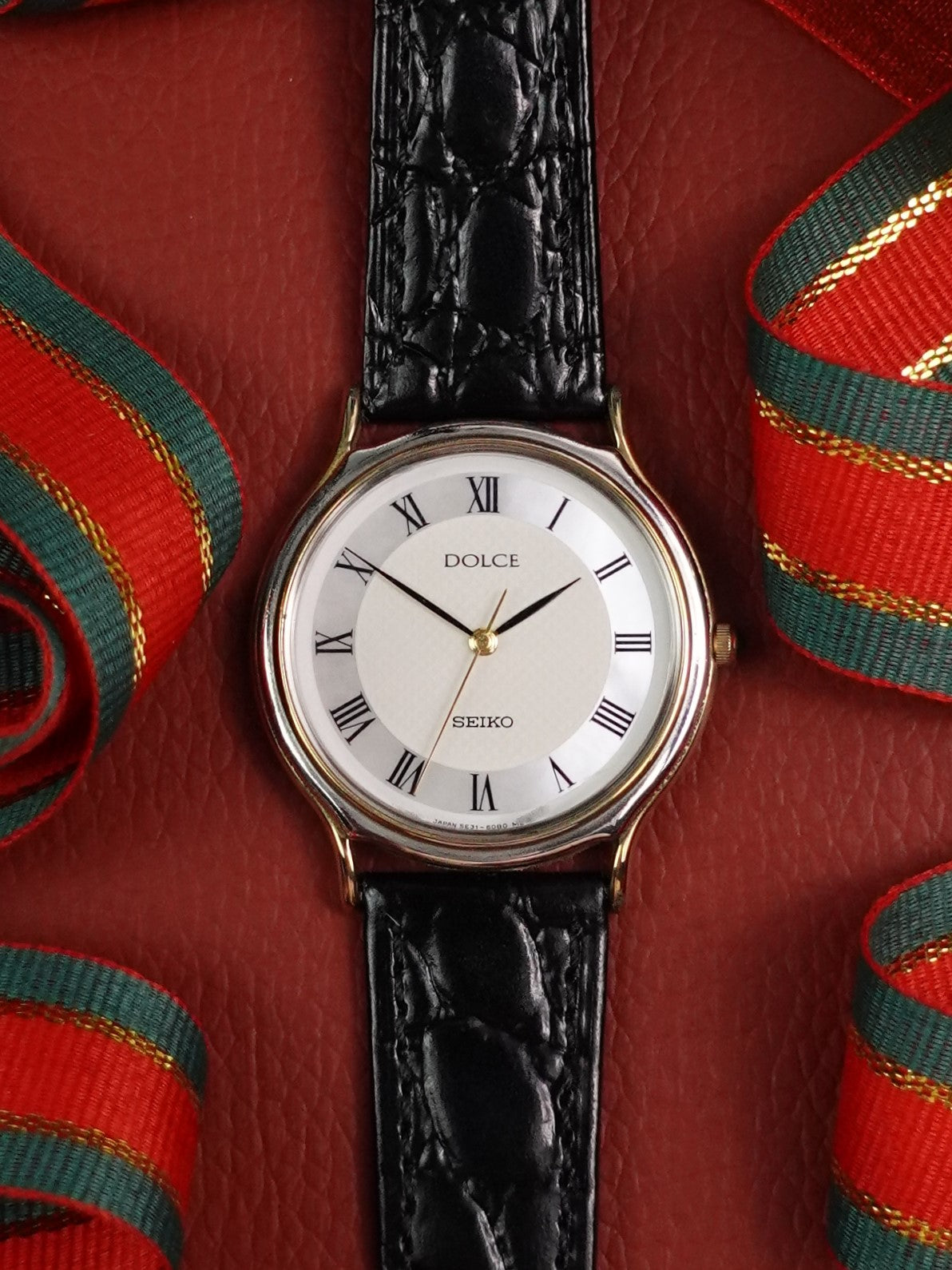 A Dolce which has been making a comeback in popularity. An art deco-case with a 2-tone case, complimented with a mother of pearl sector dial and roman numeral. I'm always a big fan of seiko's mother of pearl because its very subtle, not too pink yet feels very cloudy.