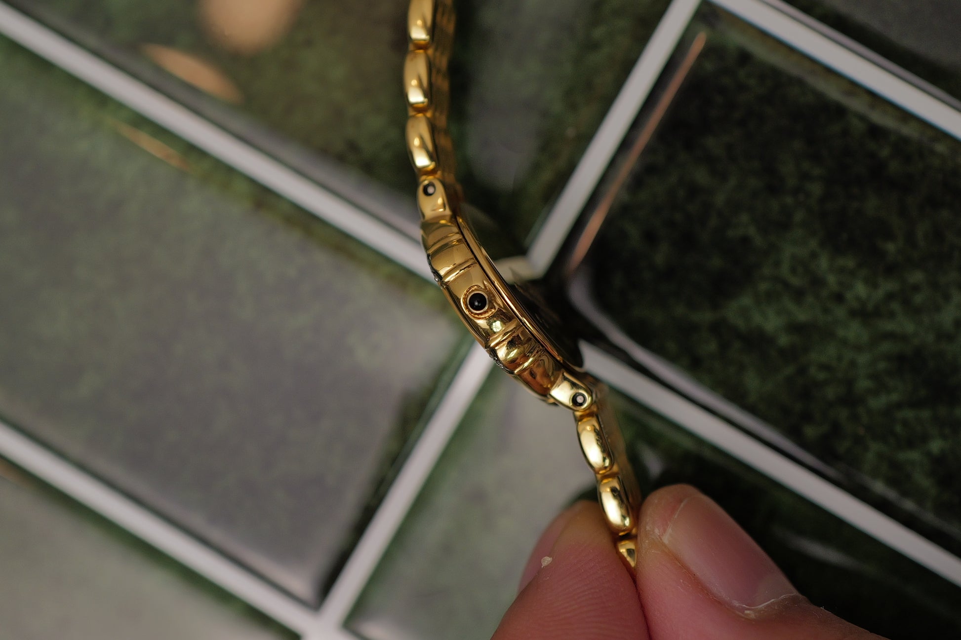Oh boy we are in for a treat! one of the larger sized exceline (just by a little bit!) with 6 studded diamonds on the bezel. A textured silver dial with gemset marker at 12 as well, something uncommonly seen on exceline as its usually exclusively gems on bezel or on the dial. Multilink bracelet with a brushed finishing, fitting up to 16cm of wrist distance.