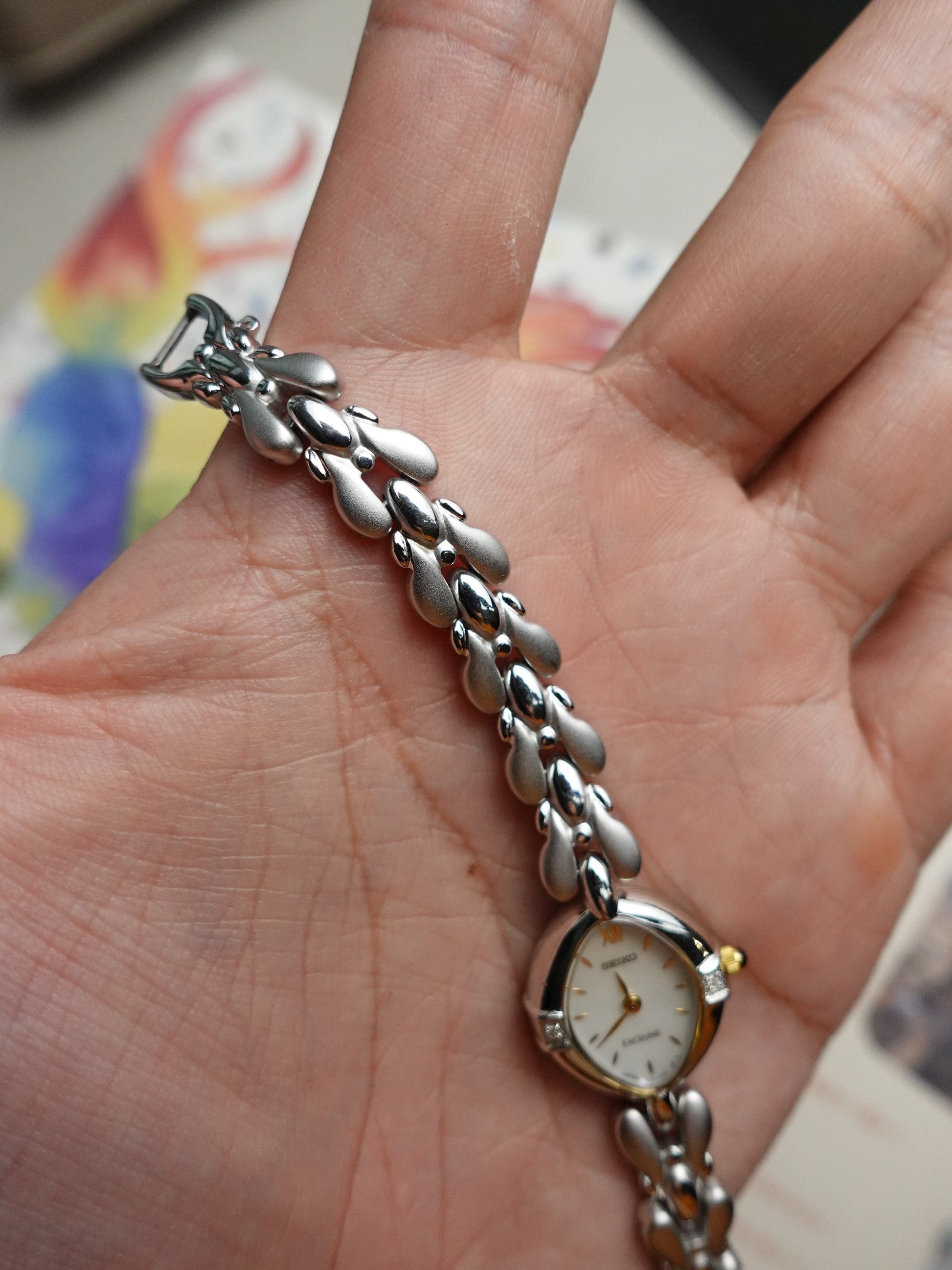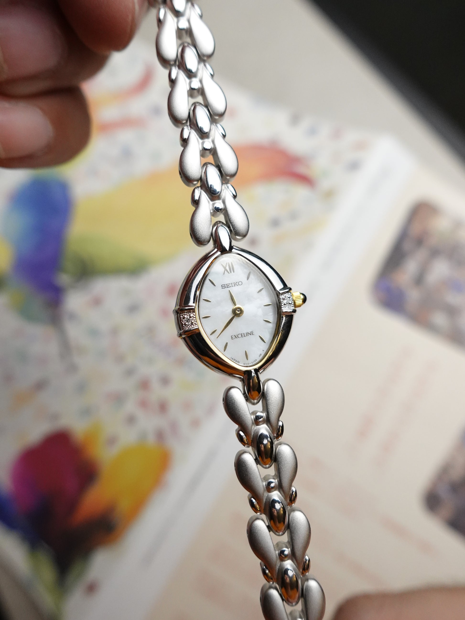 One of the rarer seiko exceline on the market, which comes enclose with real diamonds on both the left and right side, Beautiful subtle mother of pearl dial, which reflects the pearly effective of the dial in different light angles.