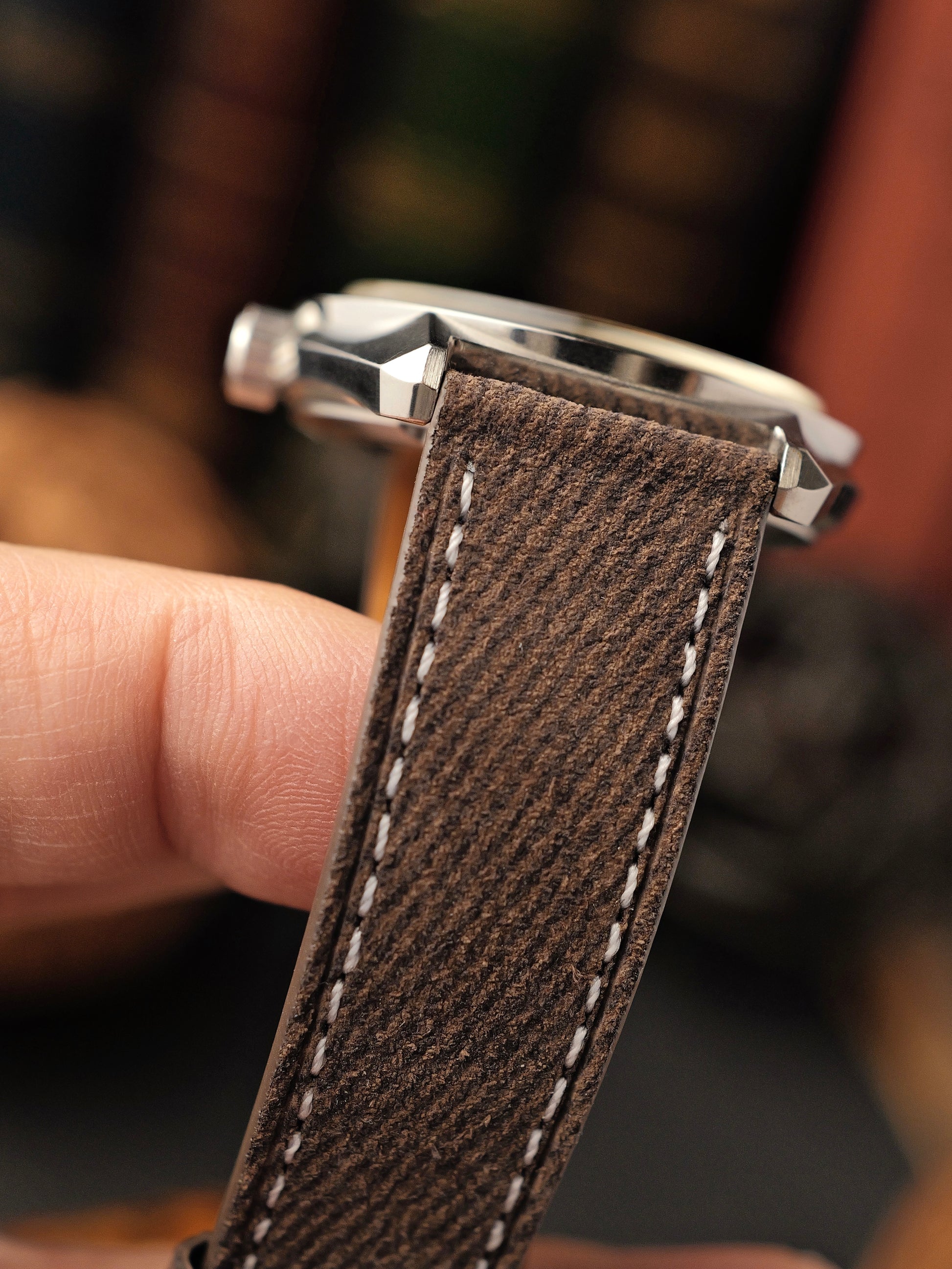 Aftermarket brown “denim”, black croc-embossed, aftermarket buckle (16mm) and original GS buckle (15mm)