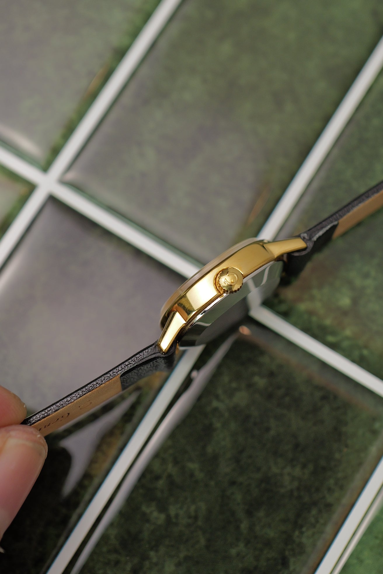 My love for vintage omega will never never stop. Why you may ask? just look at how simple and yet majestic the lines on the case is. the subtle reflection of the sunburst gold dial, the precise dial stamping of the omega logo and wording, and the contrast of black hands. There isnt much but there is so much! and if you have opened up an omega movement before, vintage movements were all brass-like finished, extremely beautiful and long lasting.