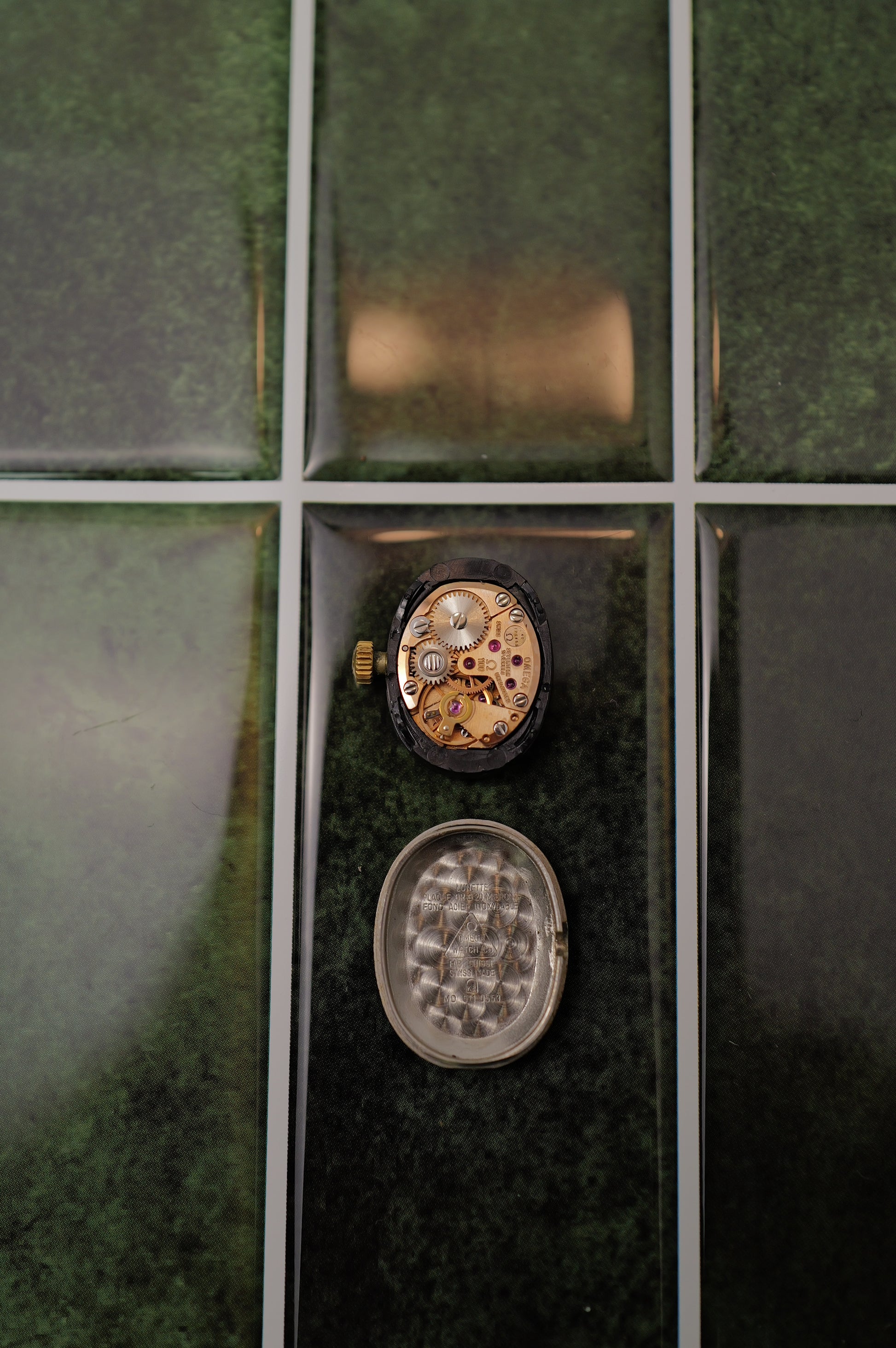 This specific piece is on a cal 1100 manual calibre. watch is in amazing condition with minimal discolorisation and acrylic glass is in excellent condition. Moement shot is alos shown and regulated to +-30s/day as per specification. relatively a very small watch hence more suitable for the ladies.