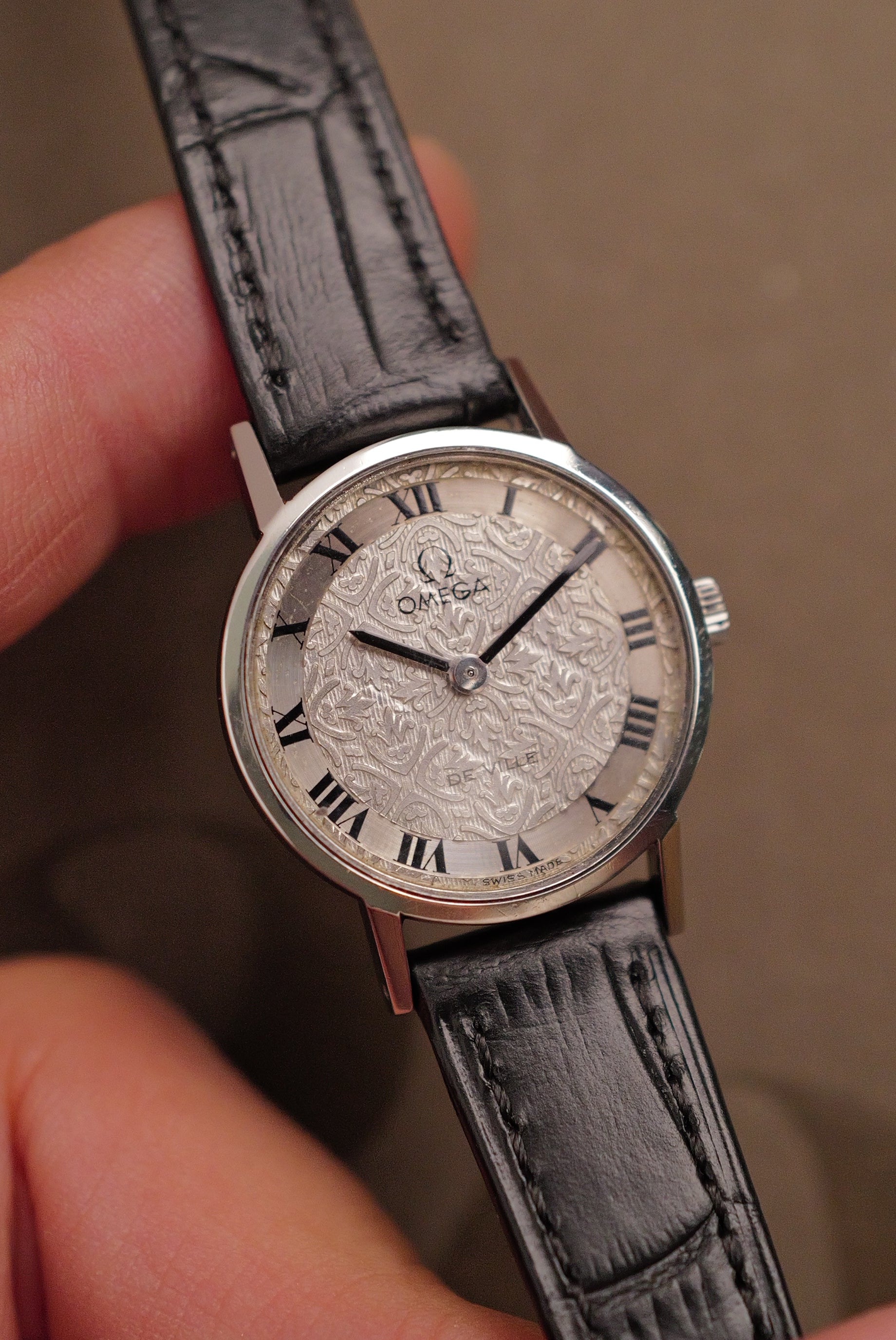 Watch Summary A beautiful omega made during the 70s, with a beautifully stamped/engraved dial. Mini floral repeating motif patterns around the dial, complimented by its iconic roman numerals. internally, the Omega 625 watch movement was produced from 1973, acting as one of the workhorse movements from omega.
