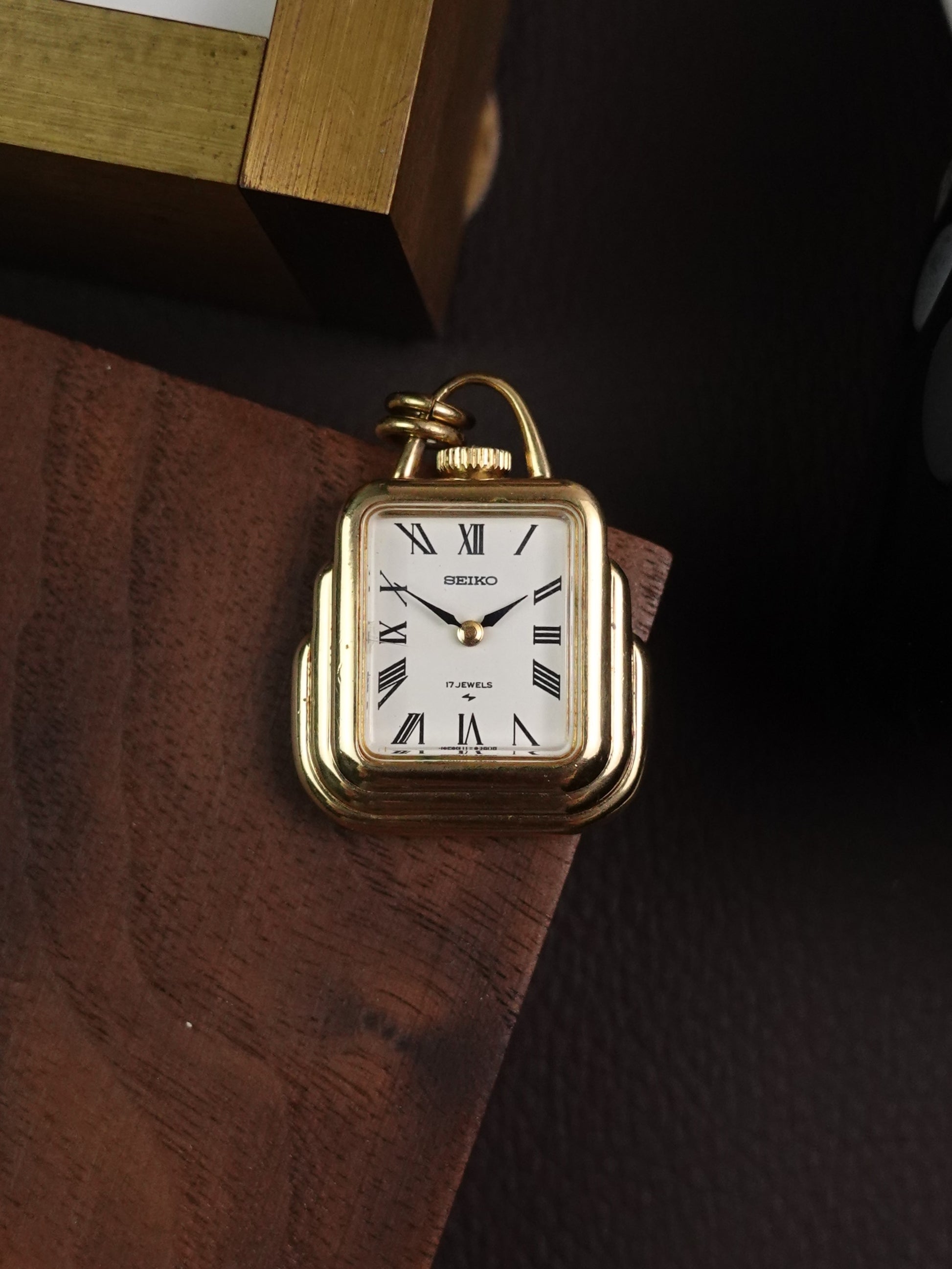 Another beautiful addition to the seiko pendent curation! for this variation, it comes wit ha towering-like design, as if this pendent watch is supposed to appear on top of a high rise building. a more classical dial design with its roman numeral, i feel this piece would look great as a bag accessory.