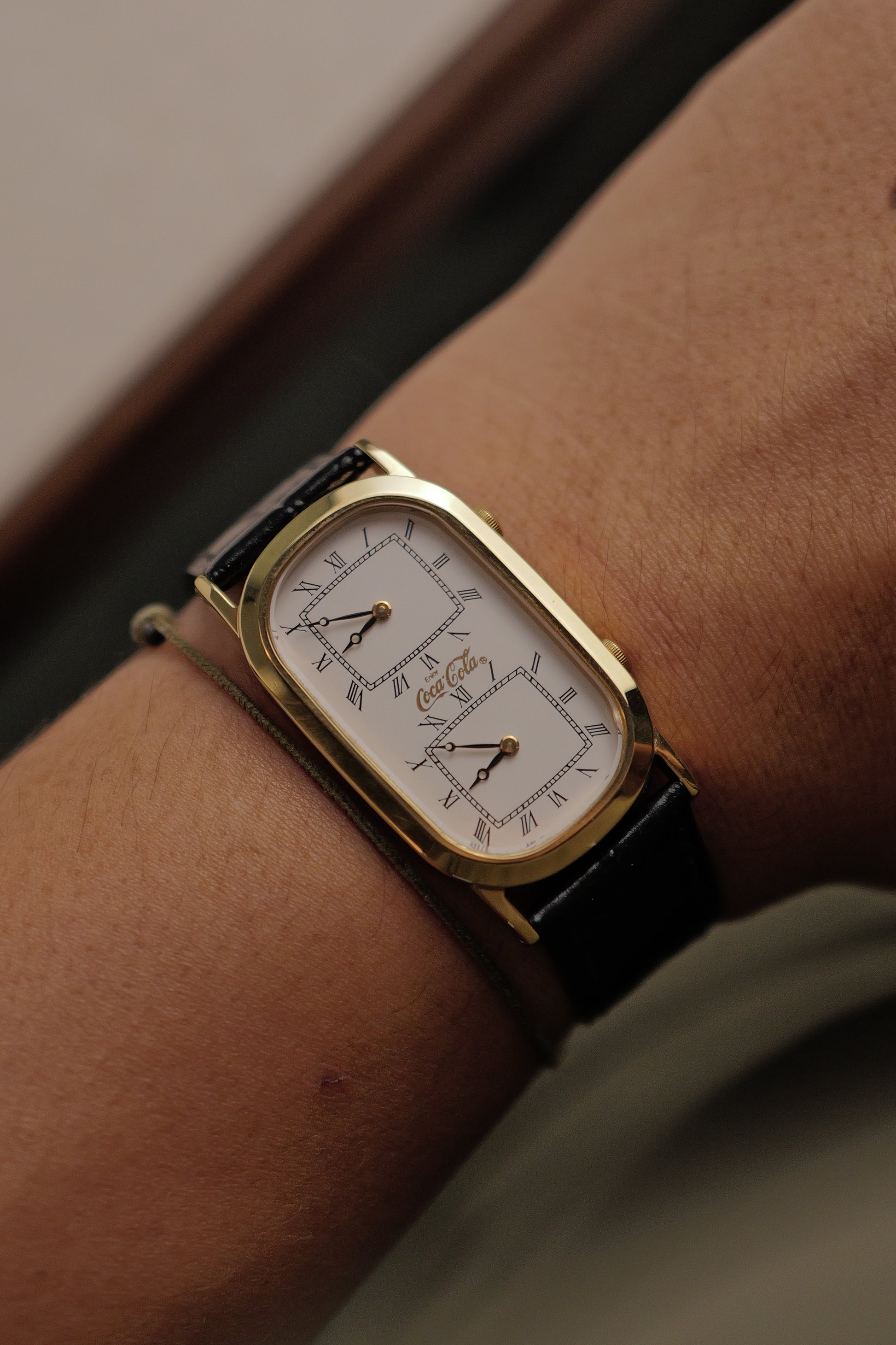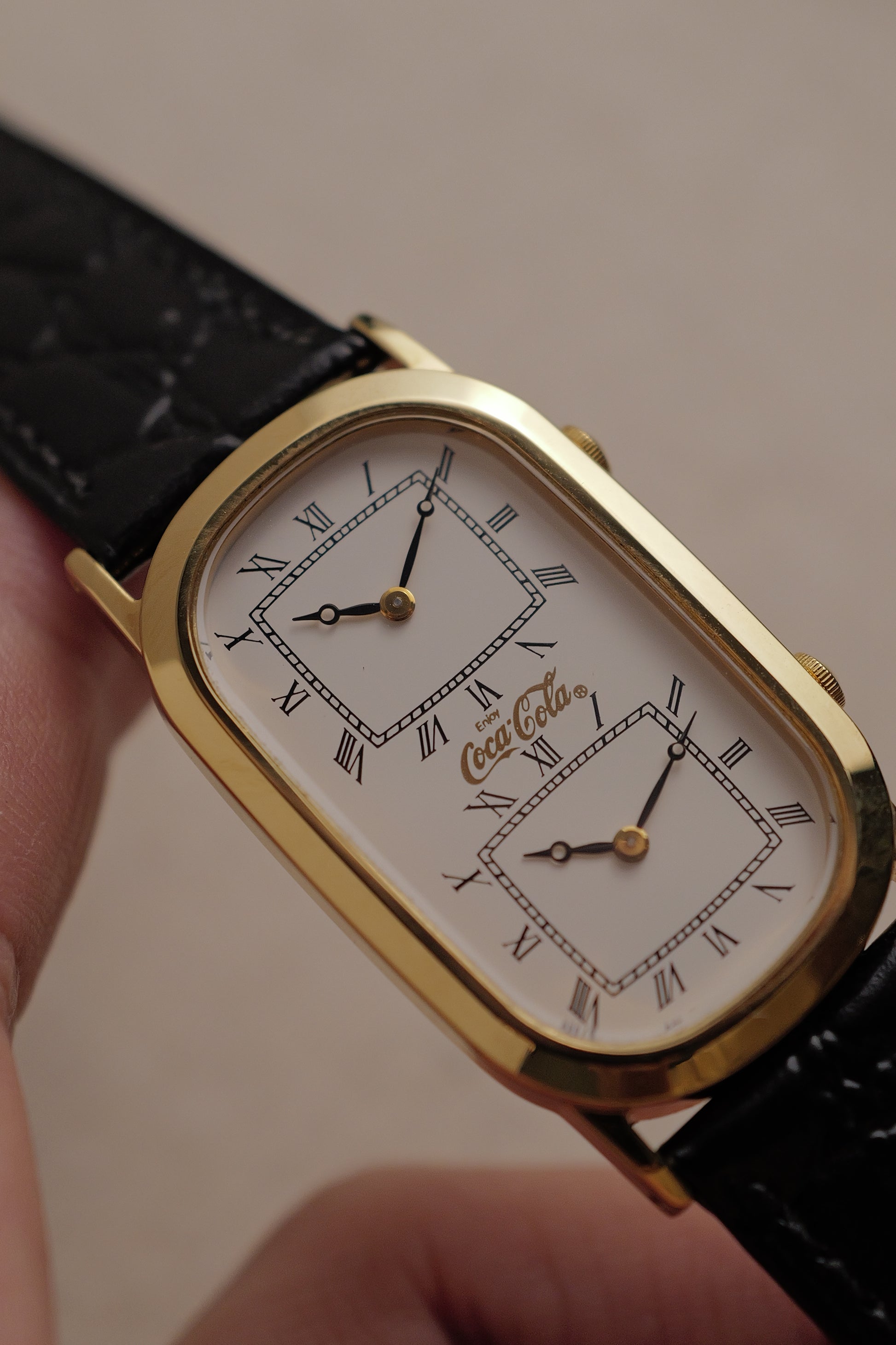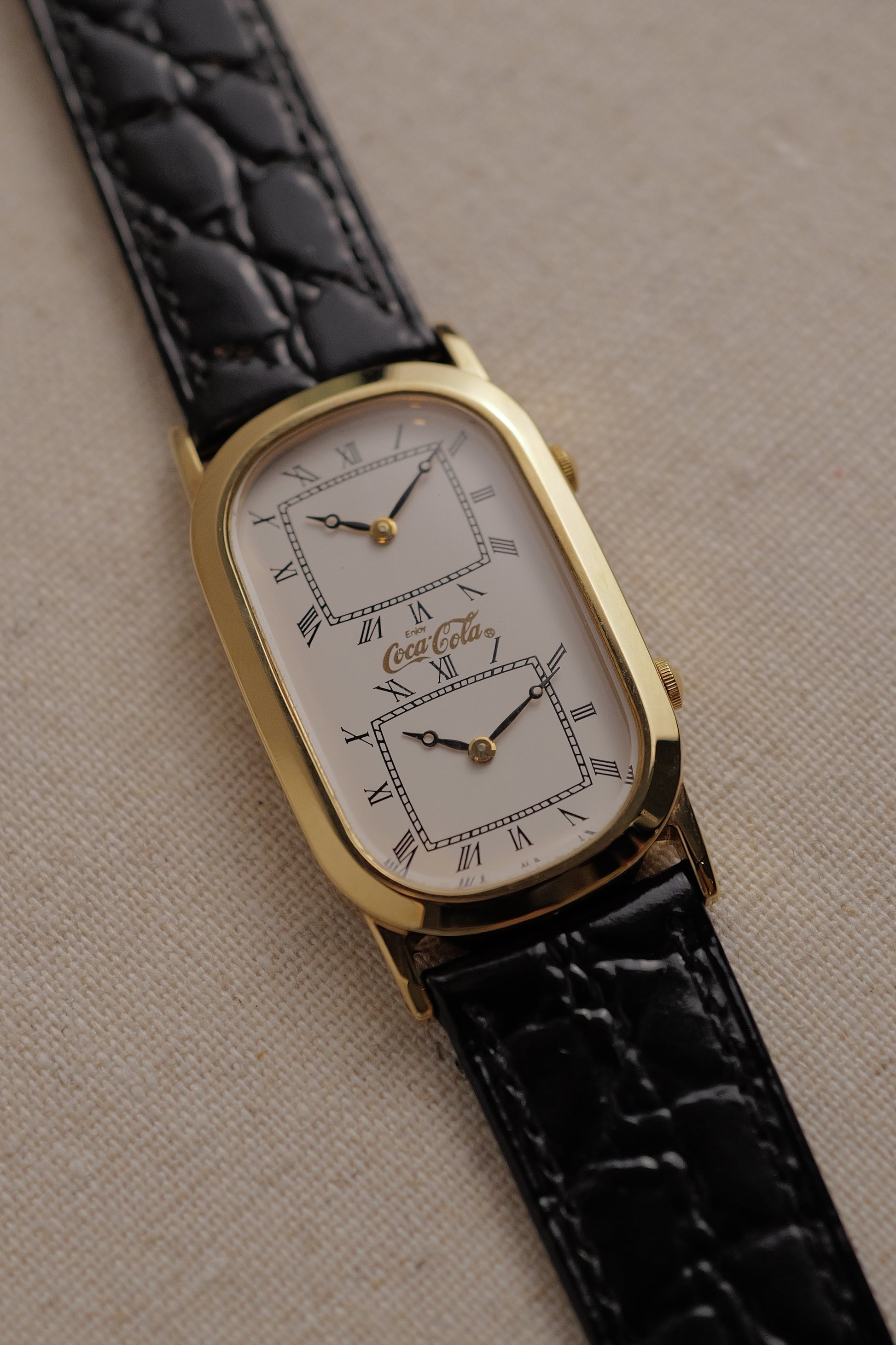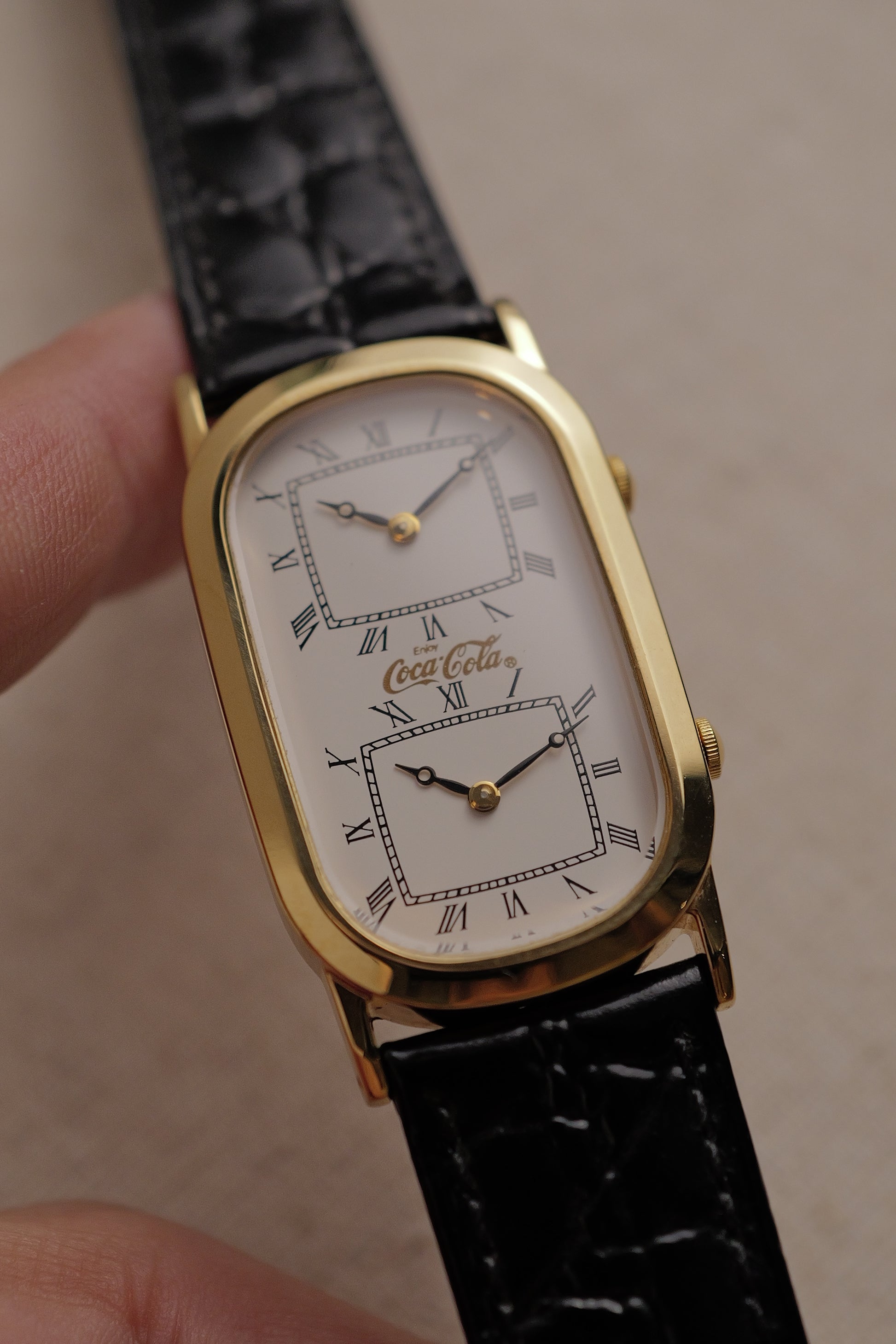 Watch Summary A unique dual time coca cola edition piece form seiko, featuring 2 roman dials with breguet hands. a pill-shaped case with a screwed on caseback (accessed from the lugs area).