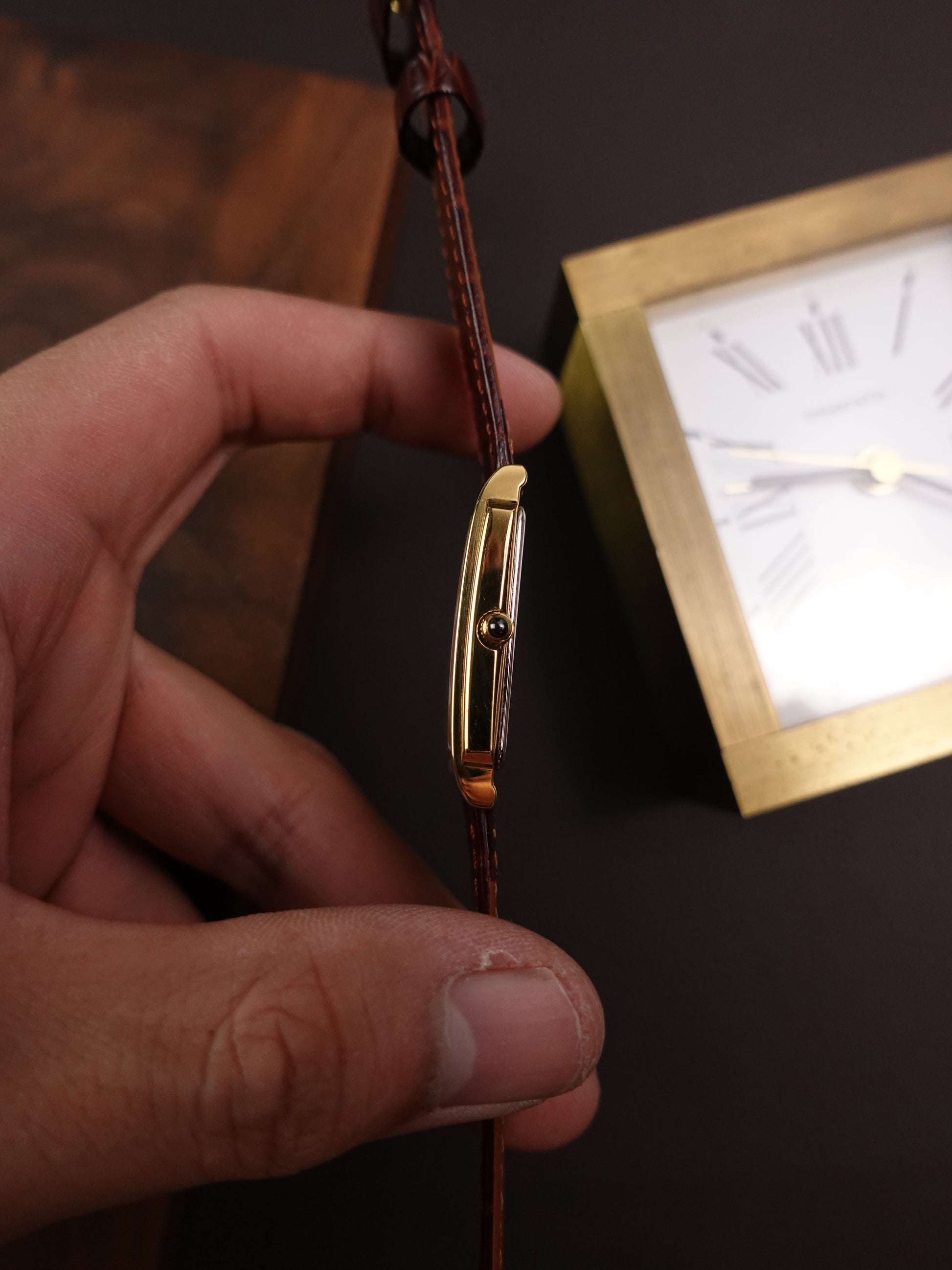 This specific model comes with a chunkier case, with the typical cartier-esque roman numerals and minute track.