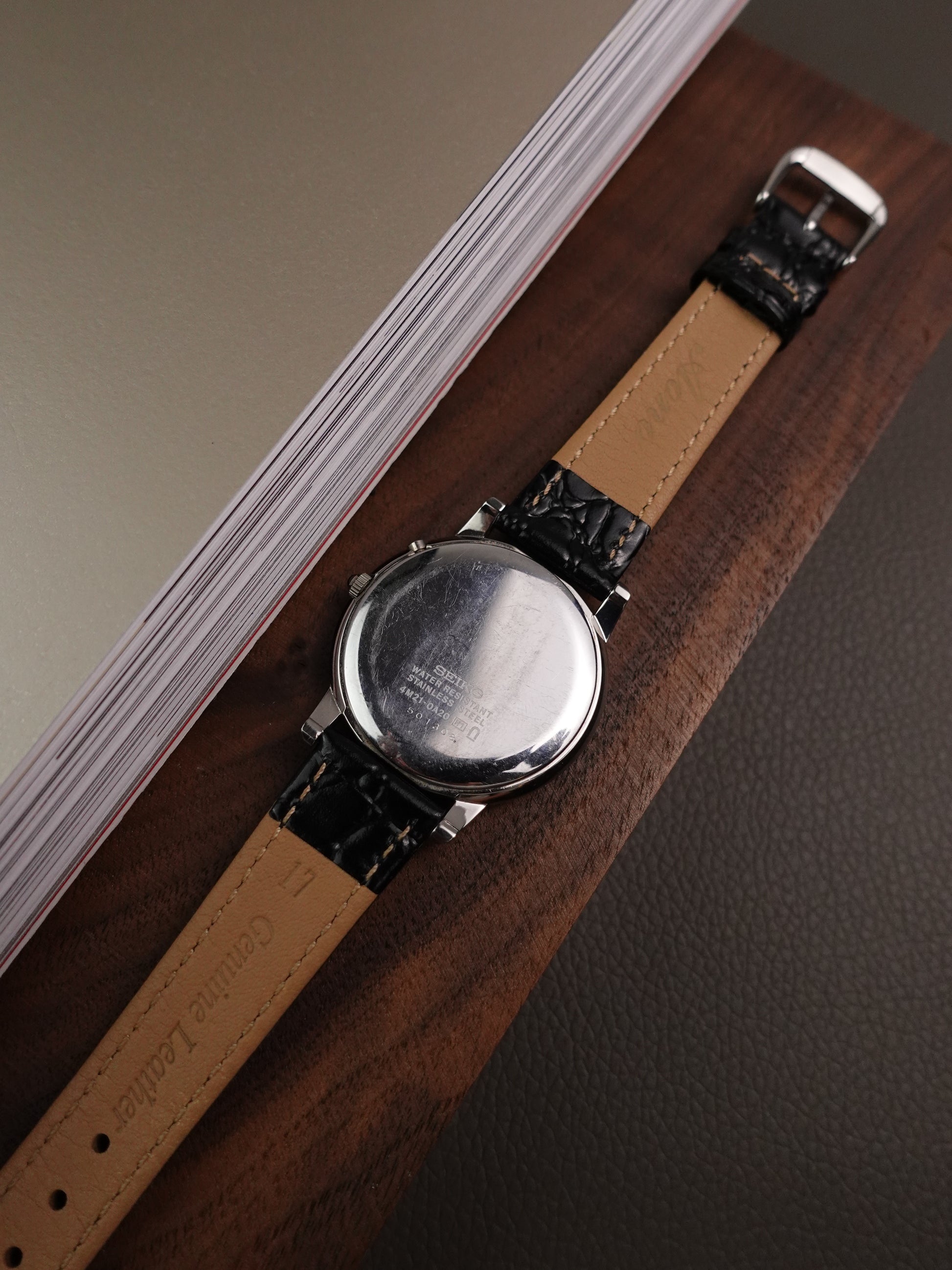 The Seiko AGS (automatic generating system), introduced in Germany in January 1988, was the world's first quartz watch to be equipped with an automatic power generating system. Forever no battery change. This specific piece is a very very simple watch, but the brush bezel makes it the perfect daily watch. Watch requires atleaSt 20 second of easy shake for the automatic quartz movement to charge up.