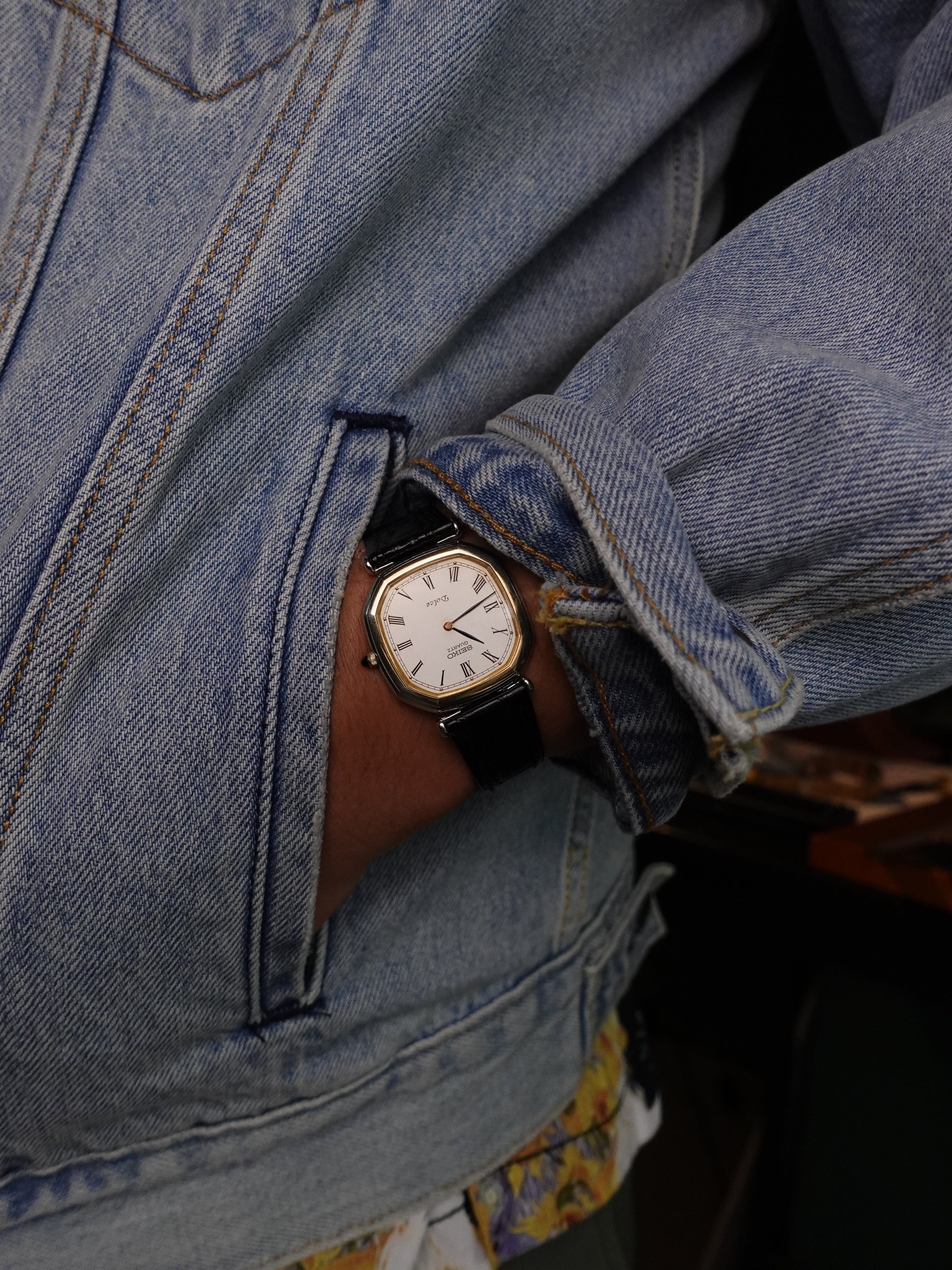 One of the earliest Dolce variation made, at the year of 1981. Their design still came with its classic roman numerals and railroad minute marker, very similar to swiss watch designs of that period. Creatively, the watch is crafted on an octagonal palladium coated case.