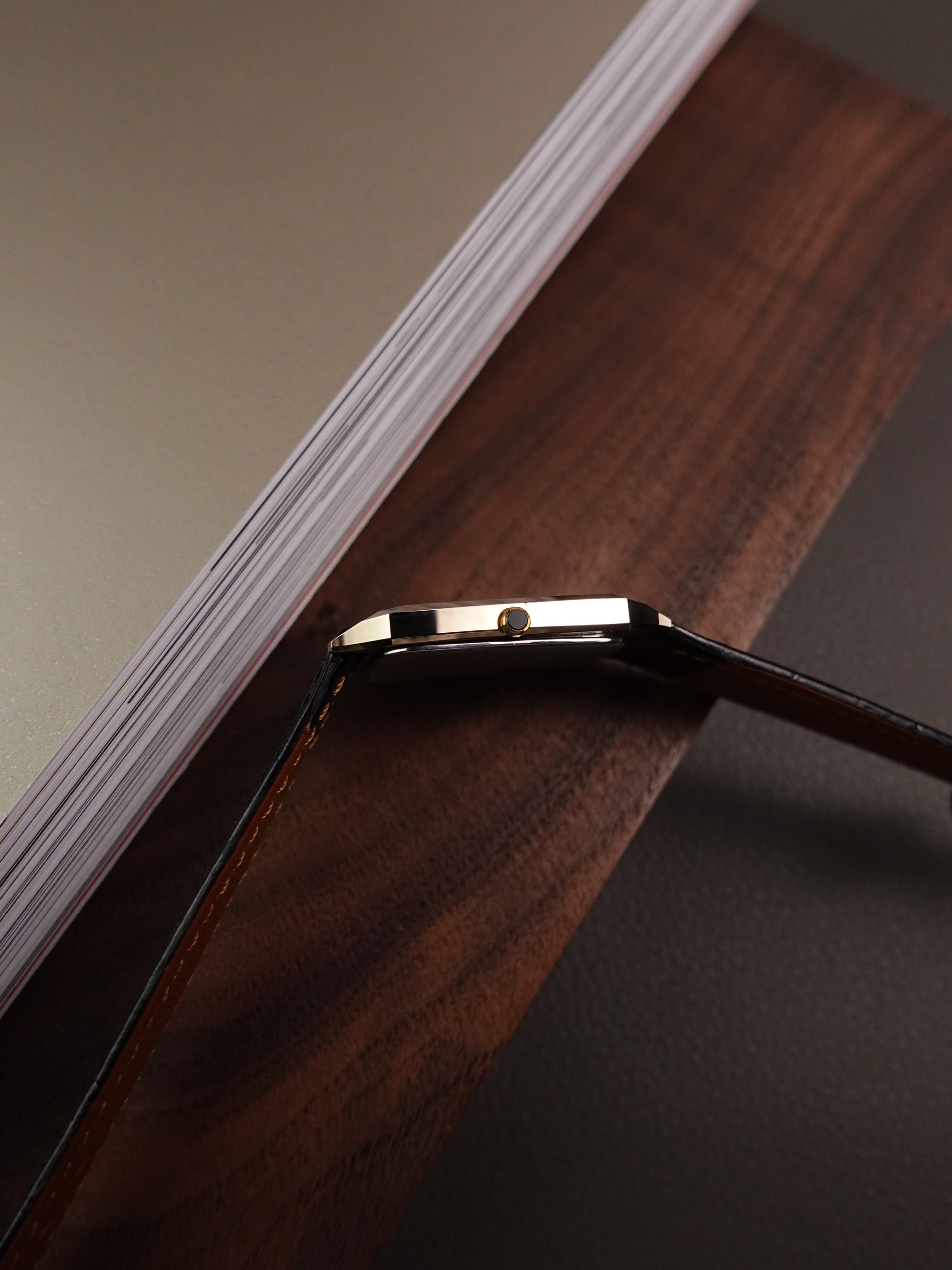 Description & Condition report: Tungsten Carbide, an insanely scratch resistant material. This is the reason why Tungsten Carbide Dolce were able to survive 30 odd years and still look so pristine. A closer look at the dial and you'll see its the ever iconic Gold flake dial, one which reflects small pieces of "gold" flakes along it. One of the most beautiful and rarest Dolce in the store.
