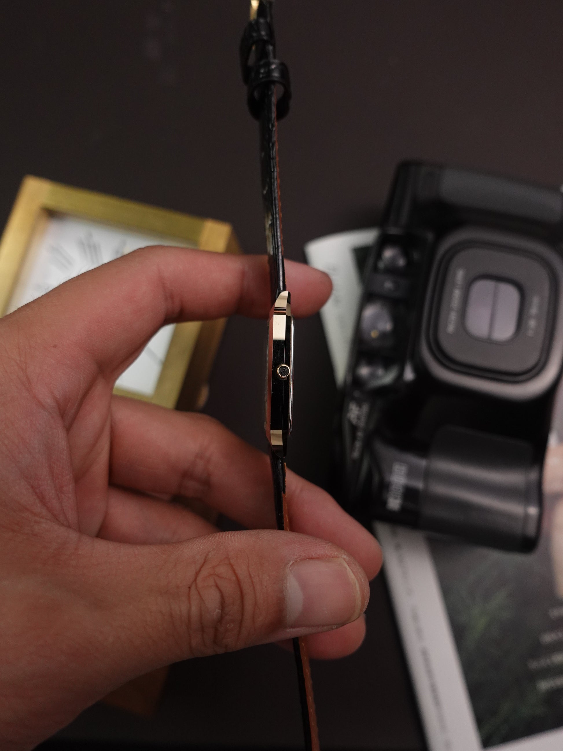 Description & Condition report: Tungsten Carbide, an insanely scratch resistant material. This is the reason why Tungsten Carbide Dolce were able to survive 30 odd years and still look so pristine. A closer look at the dial and you'll see its the ever iconic Gold flake dial, one which reflects small pieces of "gold" flakes along it. One of the most beautiful and rarest Dolce in the store.