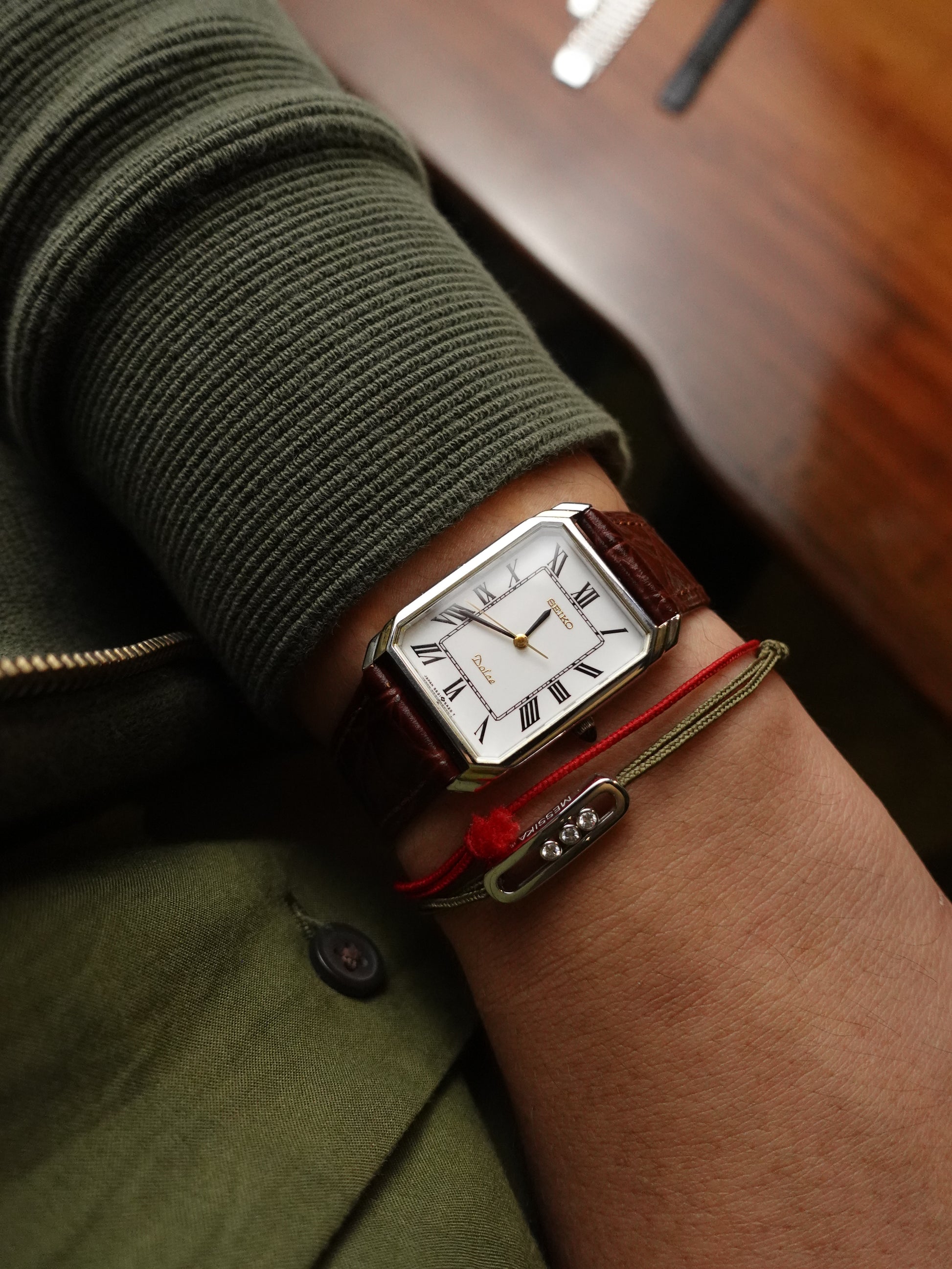 A rare seiko dolce quartz which comes with a sweeping second hands. Hate the quartz ticking? Seiko has kindly given you a quartz solution as well. one crazy rare variation which took me AGES to even source. with only a handful of 5s21 movement models, these dolce in roman numeral is the most iconic in my books.