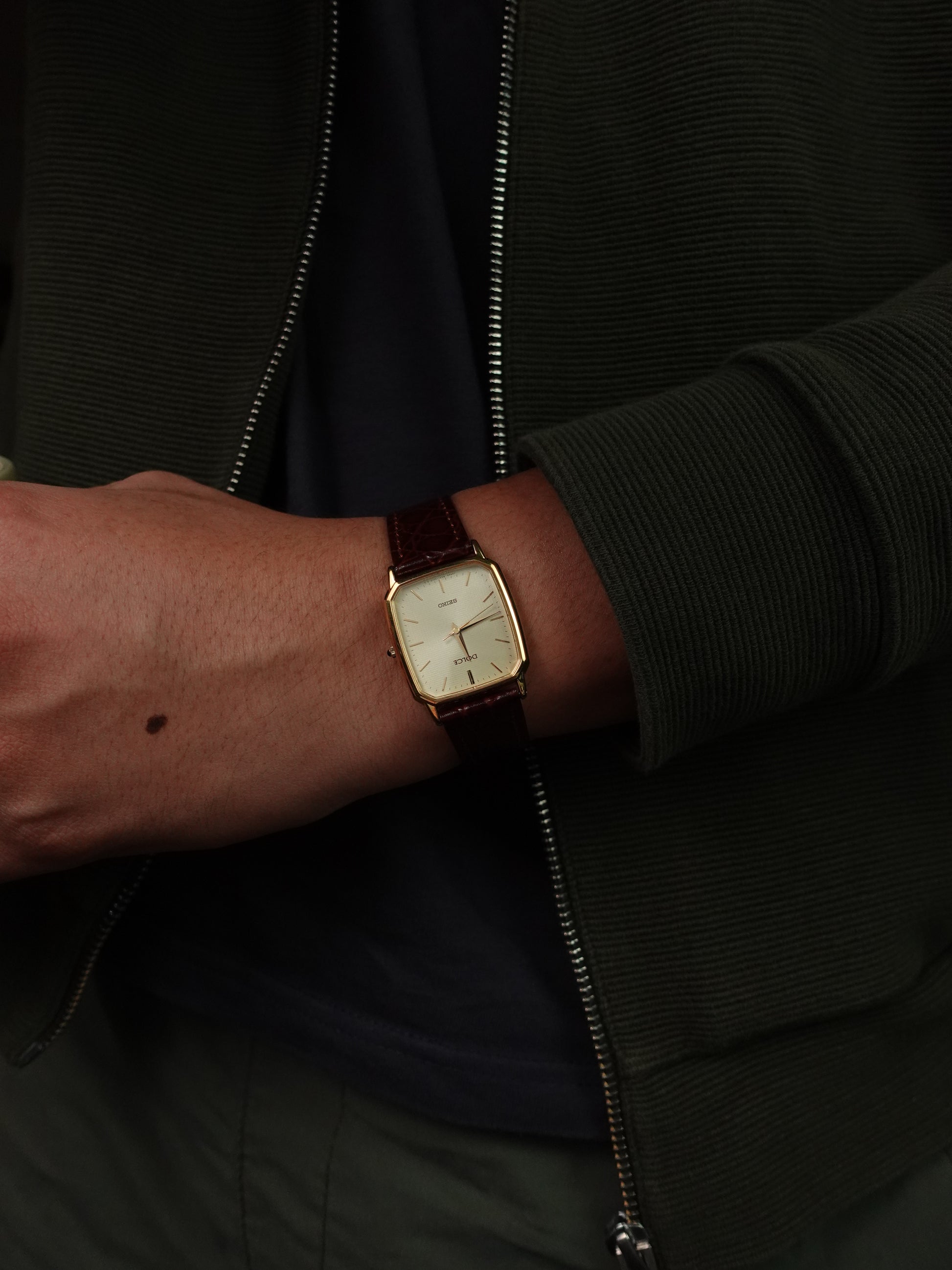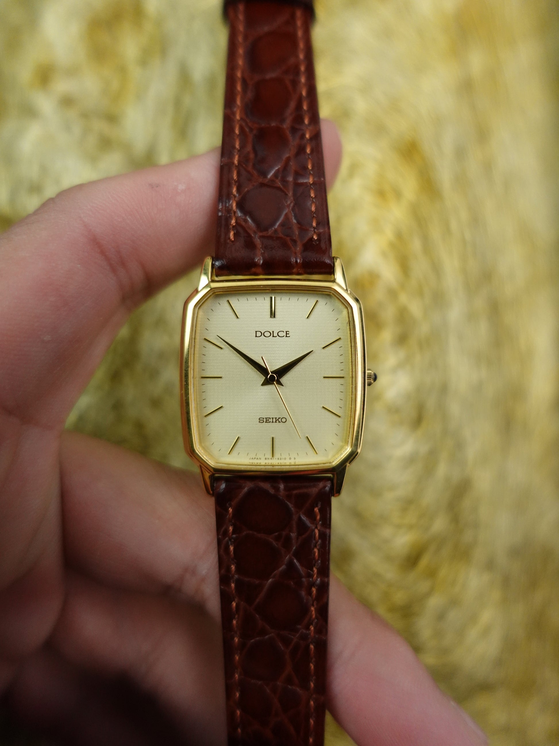 This specific piece comes with no dial corrosion or glass scratches. Miraculously it has the original seiko dolce buckle (which has a 'wing' like design). new strap has bene attached.