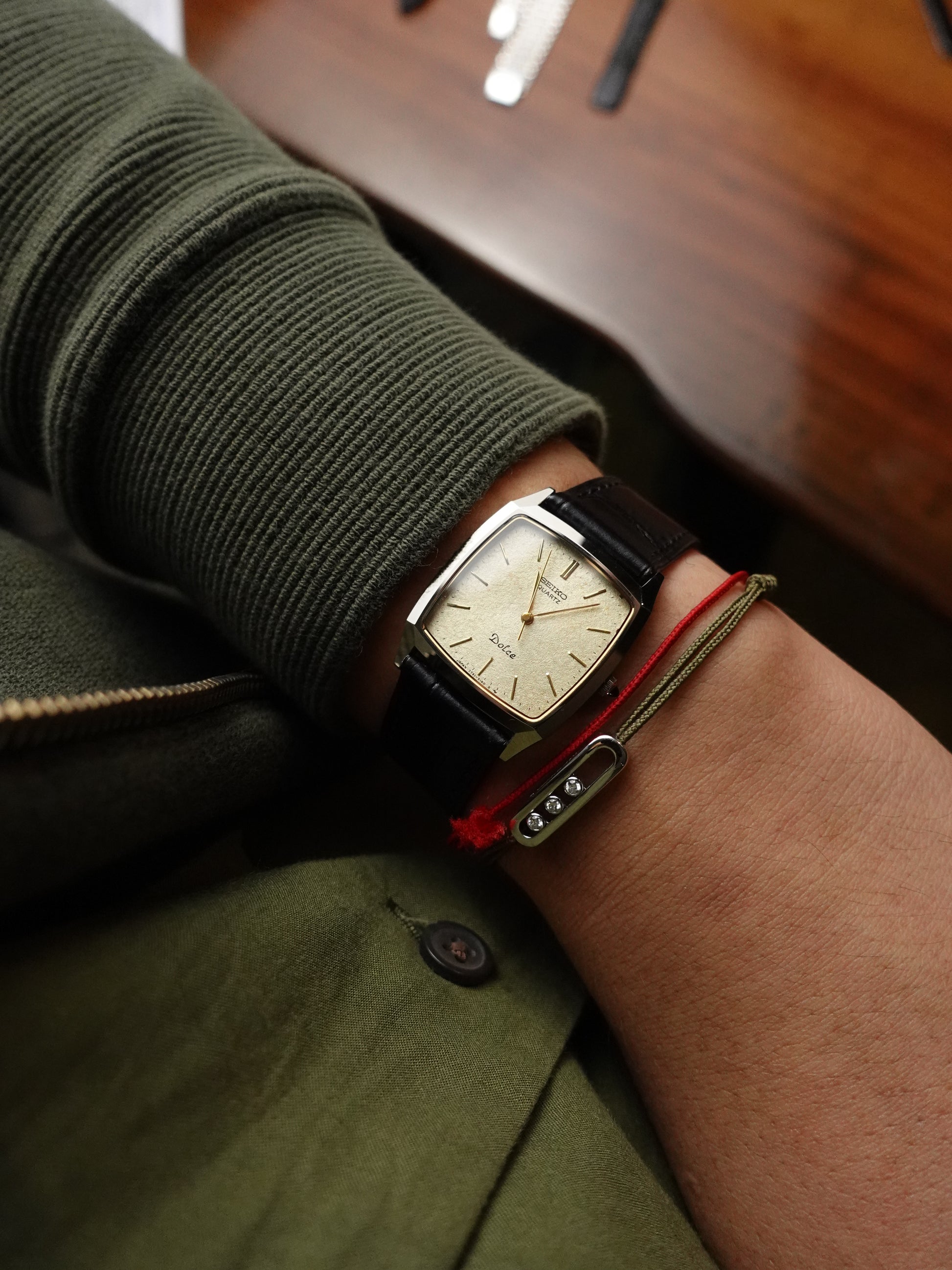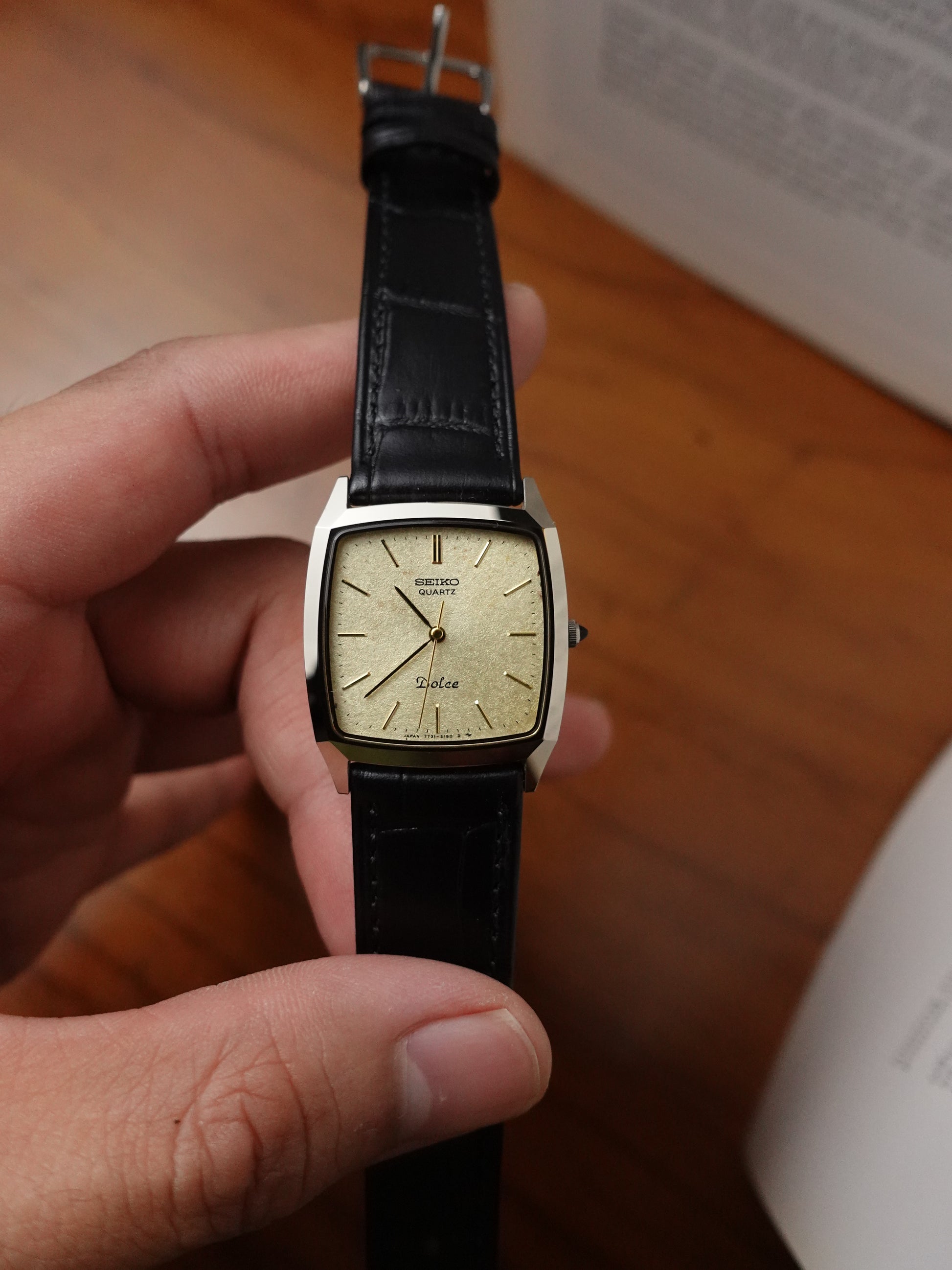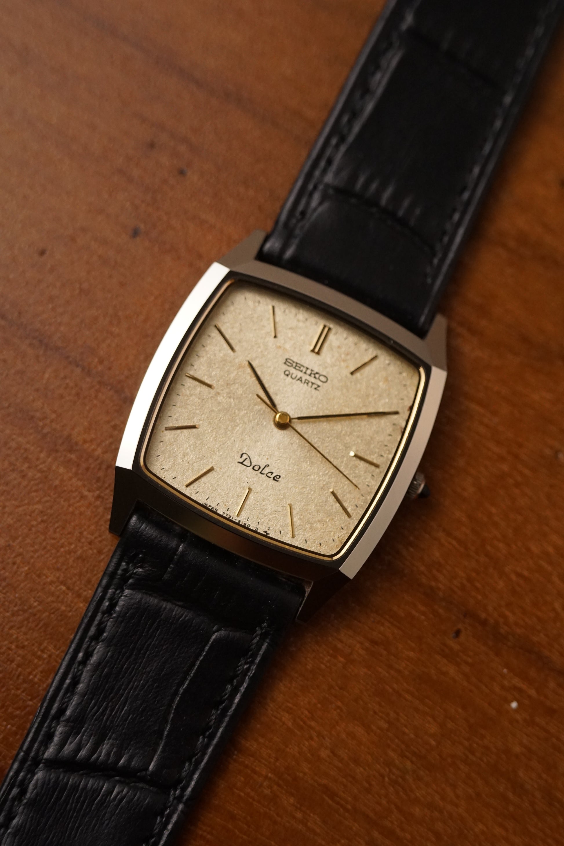 A very rare Dolce variation due to its case design. might look super simple at first glance, but it's angular cushion case and its shiny-flakey dial mesmerise those who has tried it.