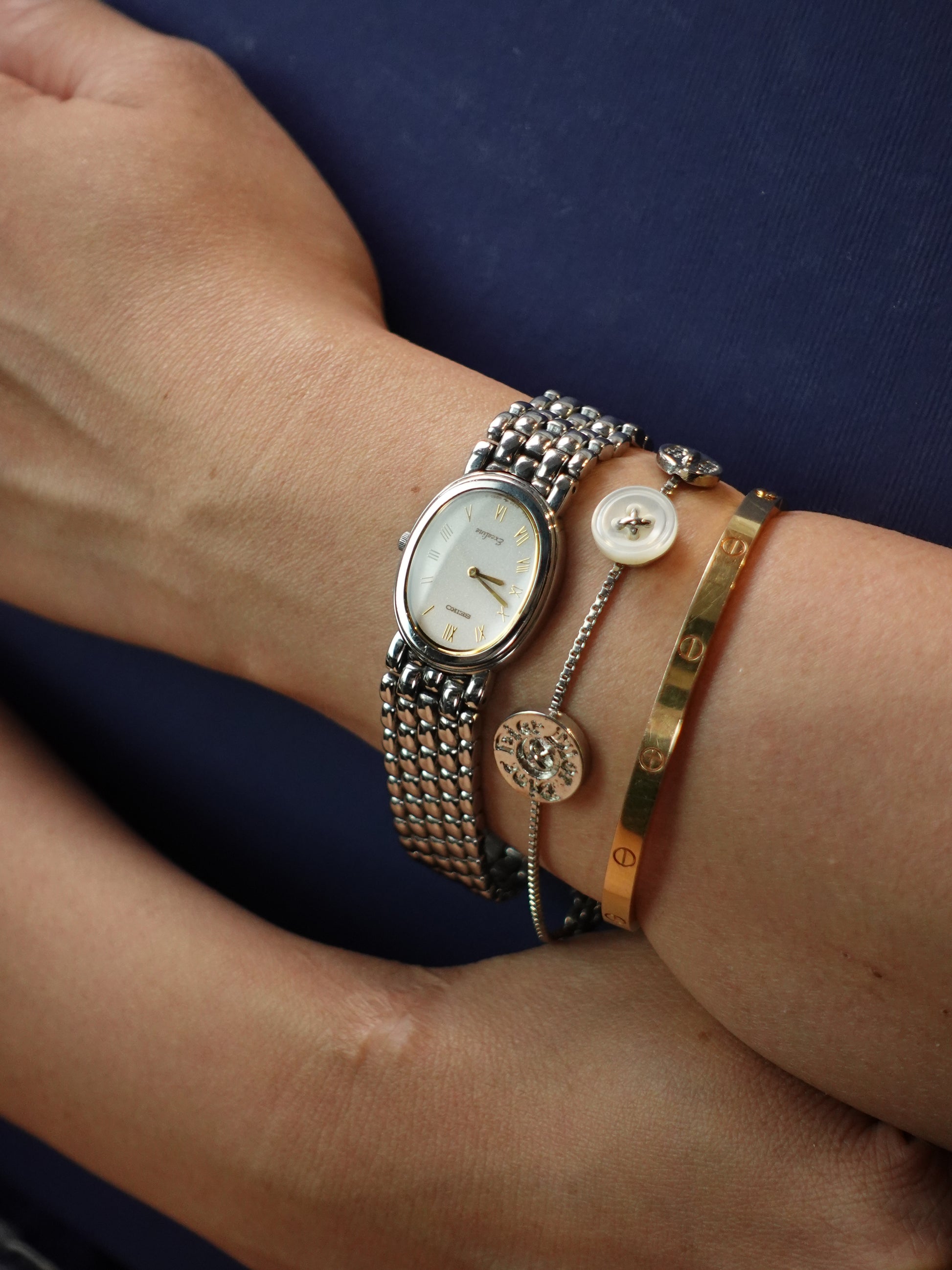 My recent obsession to bracelet watches would directly affect the curation proess, and hence there is more exceline bracelet than usual! A beautiful multi-link bracelet on an integrated ellipse case, very very subtle sparkly white dial and gold accent roman numerals, all the perfect recipe for a classical exceline design.