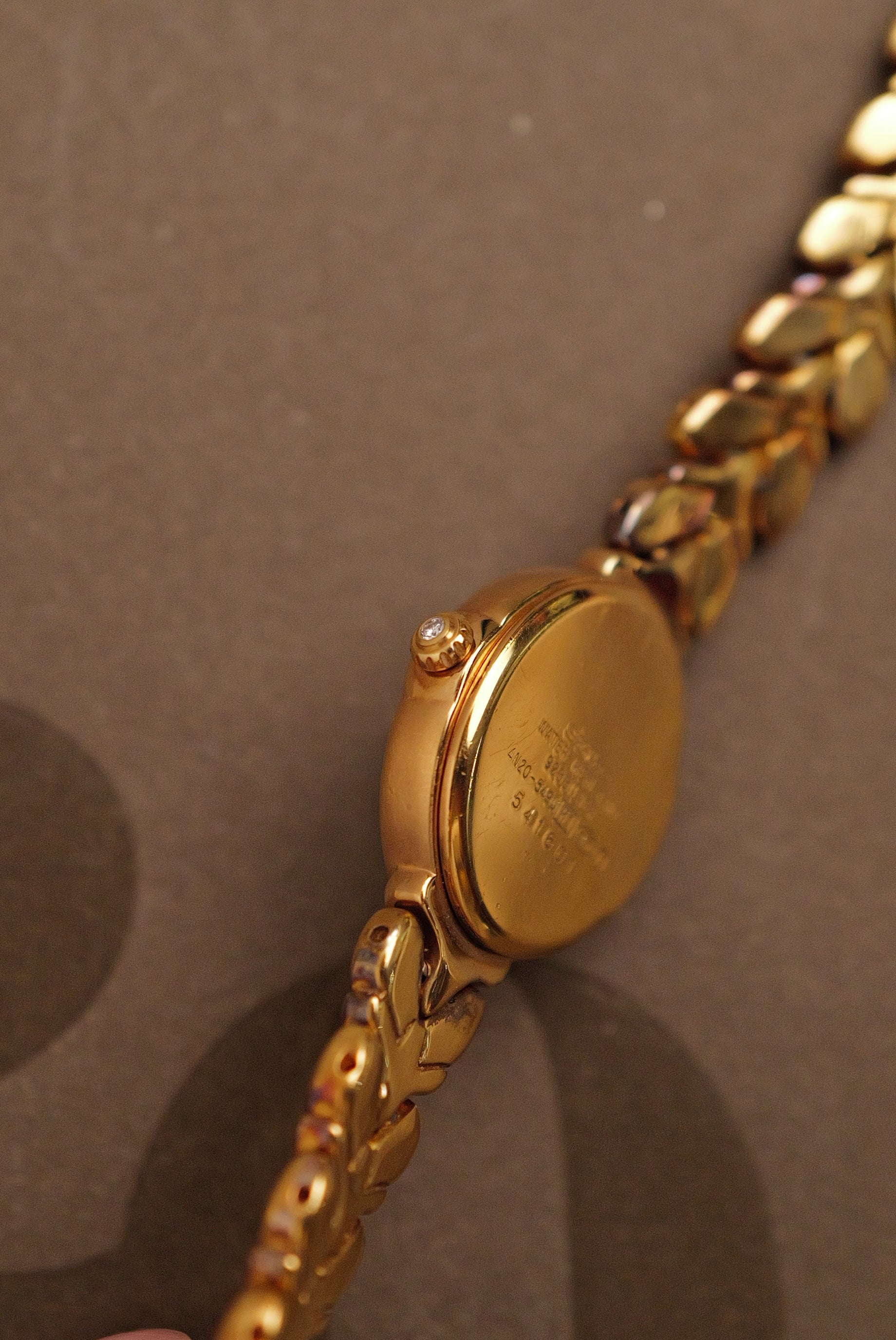 | Watch Summary | one of the more gorgeous bracelet exceline i have curated. A domed glass piece with a mother of pearl dial. Solid leaf-shape links with an alternating polish and brush finishing on the petals themselves. |