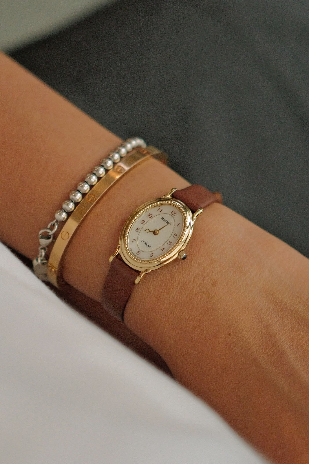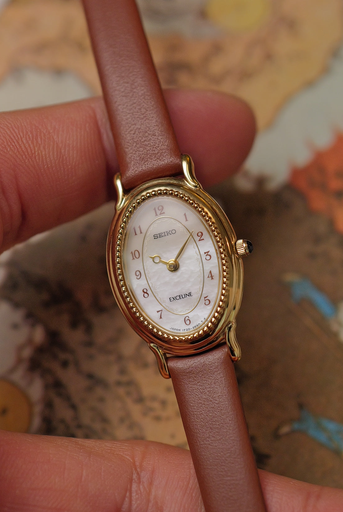 Not your typical mother of pearl seiko exceline... its actually a MOP dial with Breguet hands and breguet numerals! A beaded Bezel design which i've rarely seen and my favourite: the slightly teardrop-esque lug design which makes this one of the most classy seiko exceline ever.