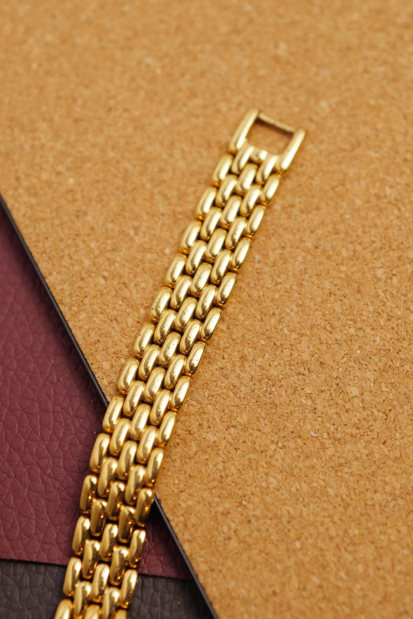 This watch in particular has corrosion on the back of the BRACELET. only visible at the back of the case. It comes with the gold plated multi link bracelet with max wrist size of 16.2 cm.