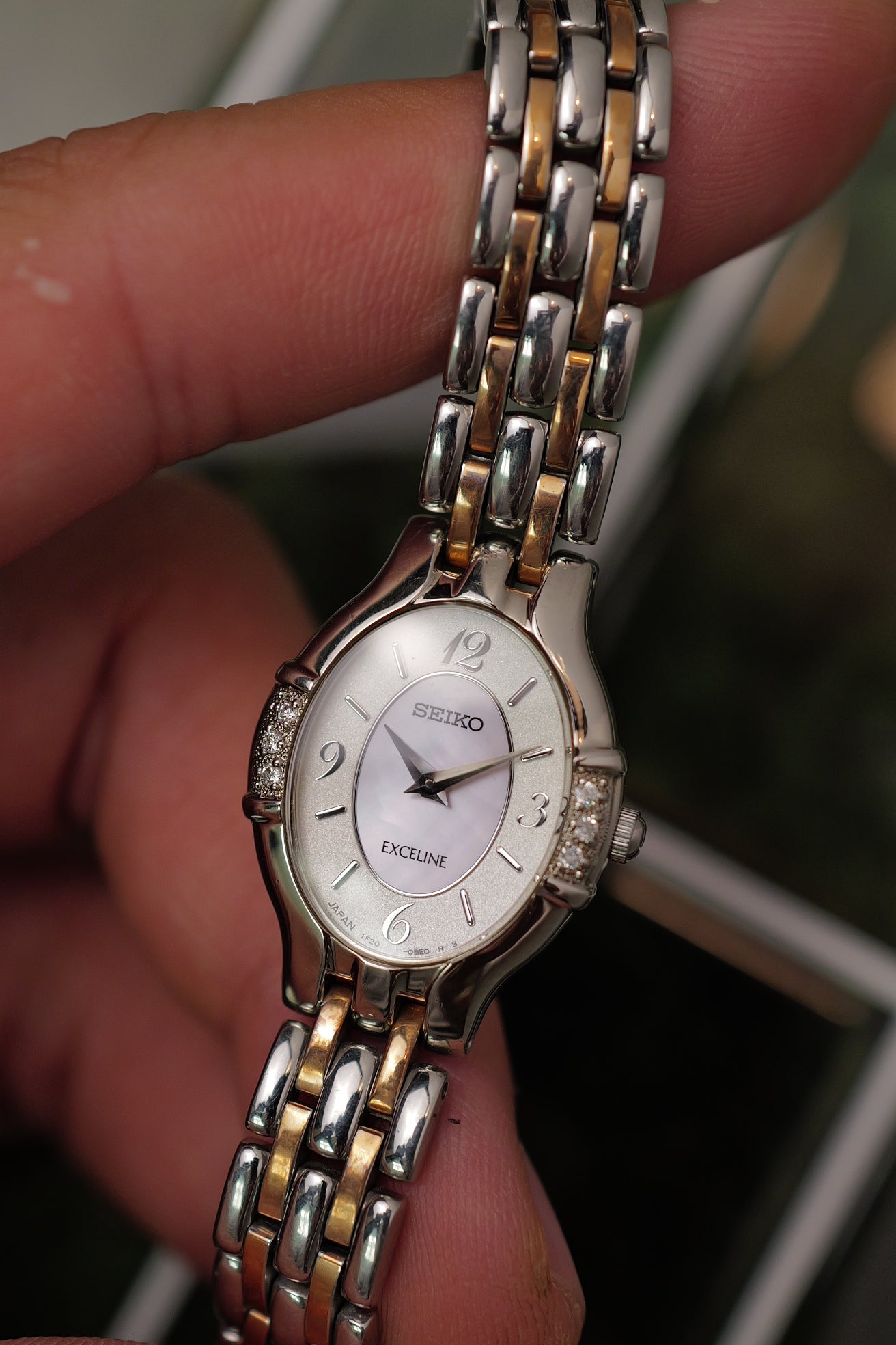 Seiko Exceline Oval with mother of pearl dial and bezel diamonds Circa. 1994 Full set