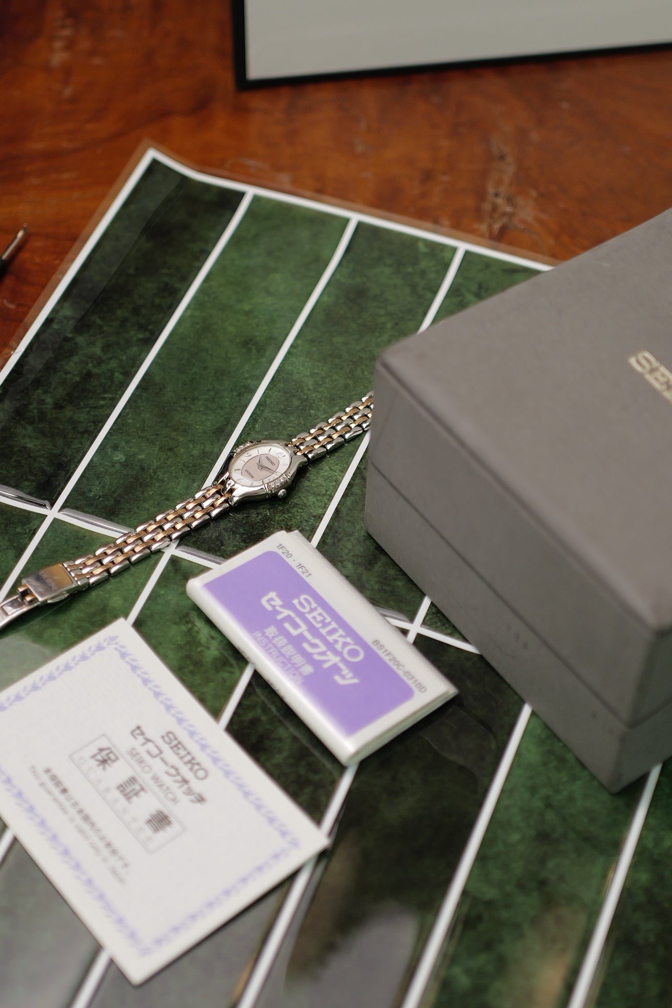 A first time curation in the shop and a beauty! One of the rarest seiko exceline in the market which comes with a mother of pearl dial and a 2 tone multi link bracelet. A purpl-ish mother of pearl dial which in certain angles reveal a cloud-like texture. Also dont forget the 6 diamonds on both side of the bezel!