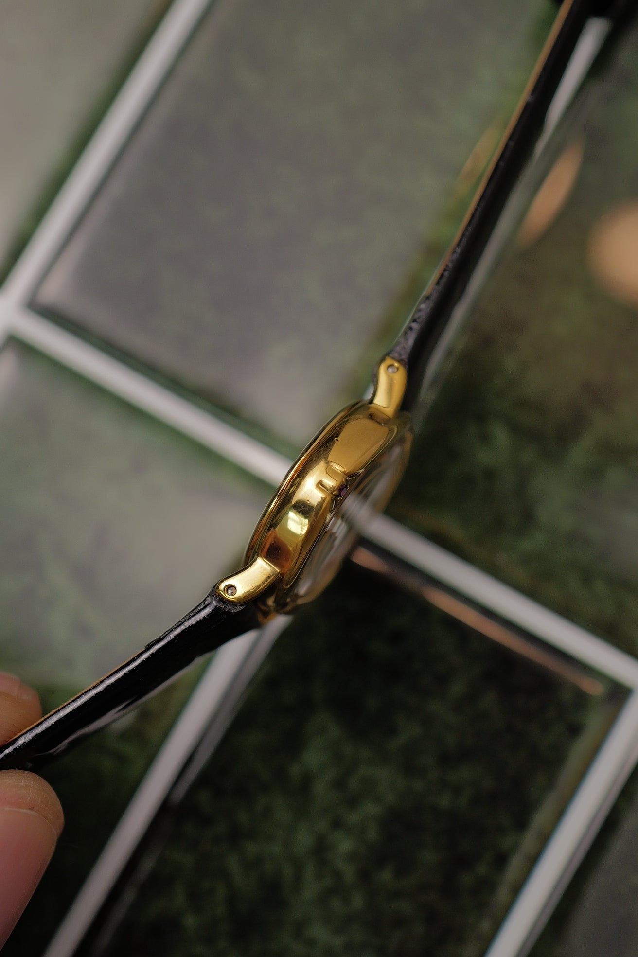 Shaped like a floral pedal case with the over aching effectively on 4 sides of the bezel, the Valvet rose exceline is a marvel to look at! Might look circular at first, but closer inspection shows how dynamic the case is; gold classical roman numerals, 4 gem set ruby on the bezel, and a porcelain-esque white dial.