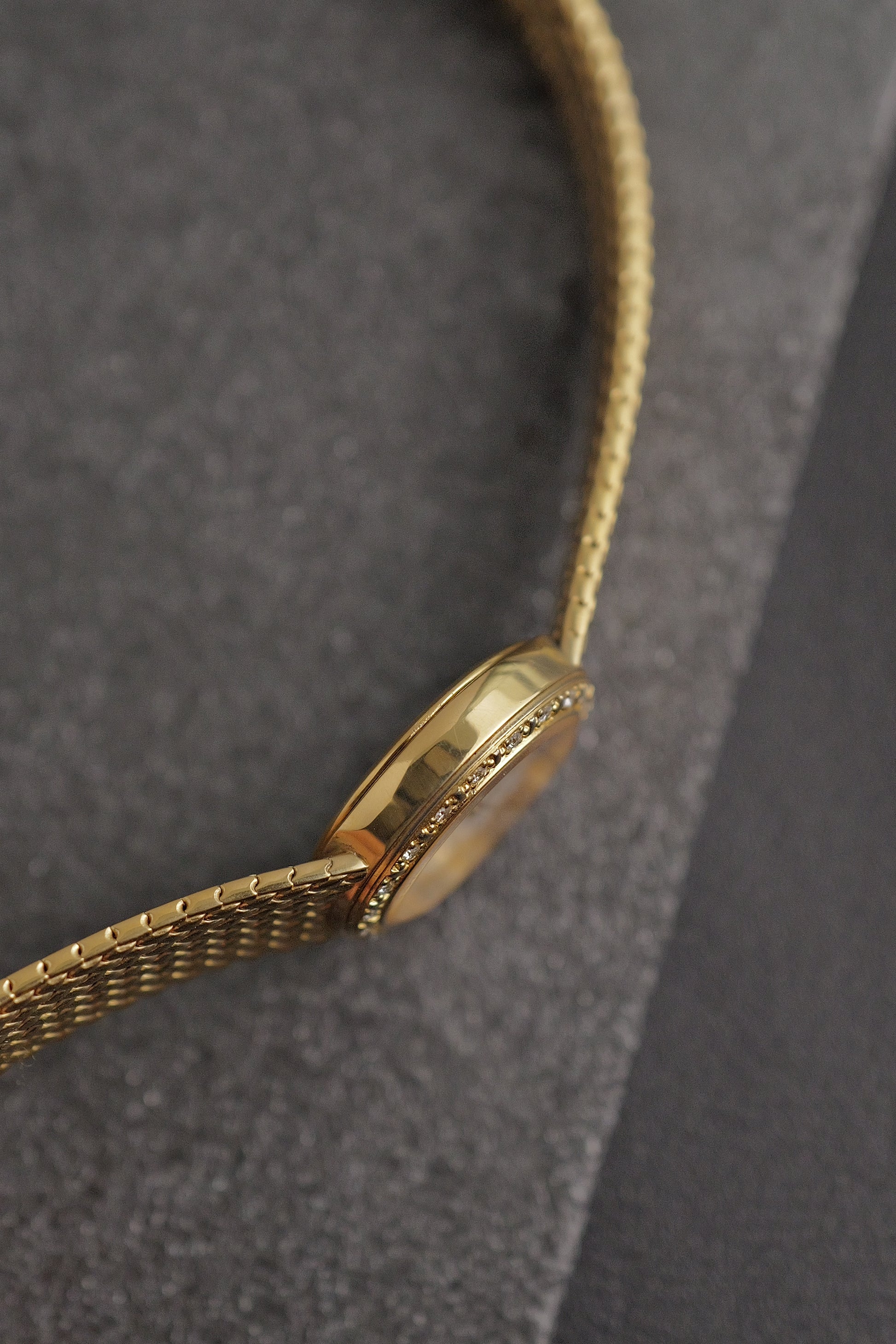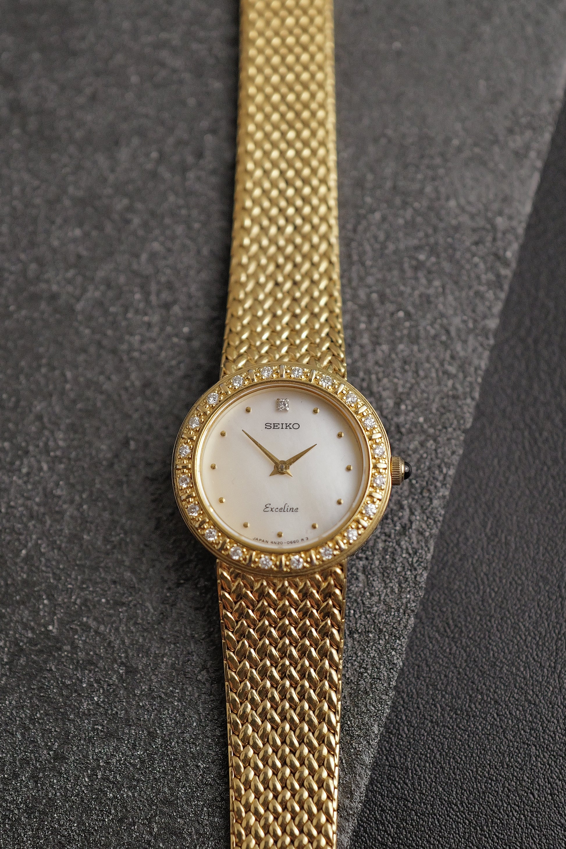 | Watch Summary | A 20-diamond bezel seiko exceline with a mother of pearl dial. Comes with a cut to size integrated bracelet design. One of the top-echelon exceline models in the seiko catalogue when real diamonds were used. Currently with a size if 16cm. DM if size cutting required |
