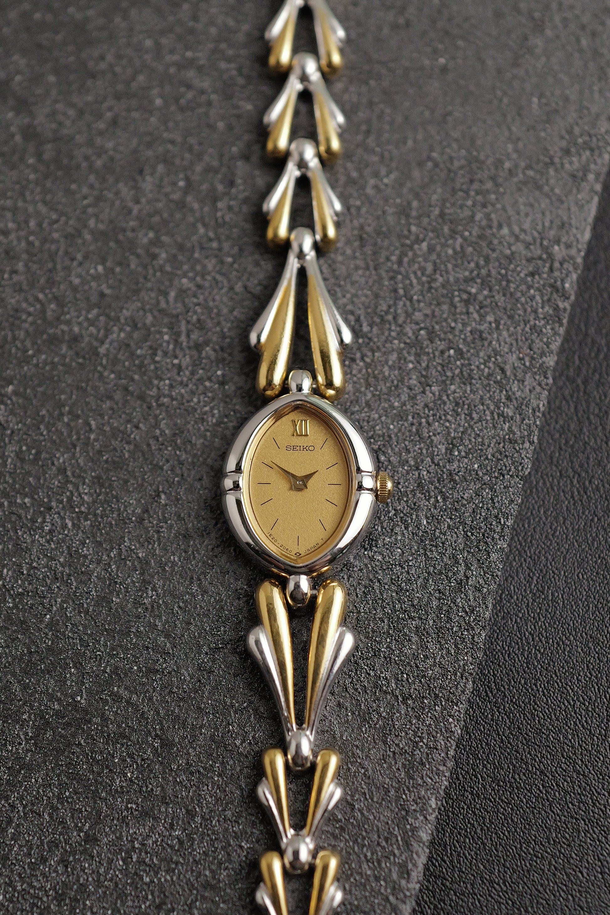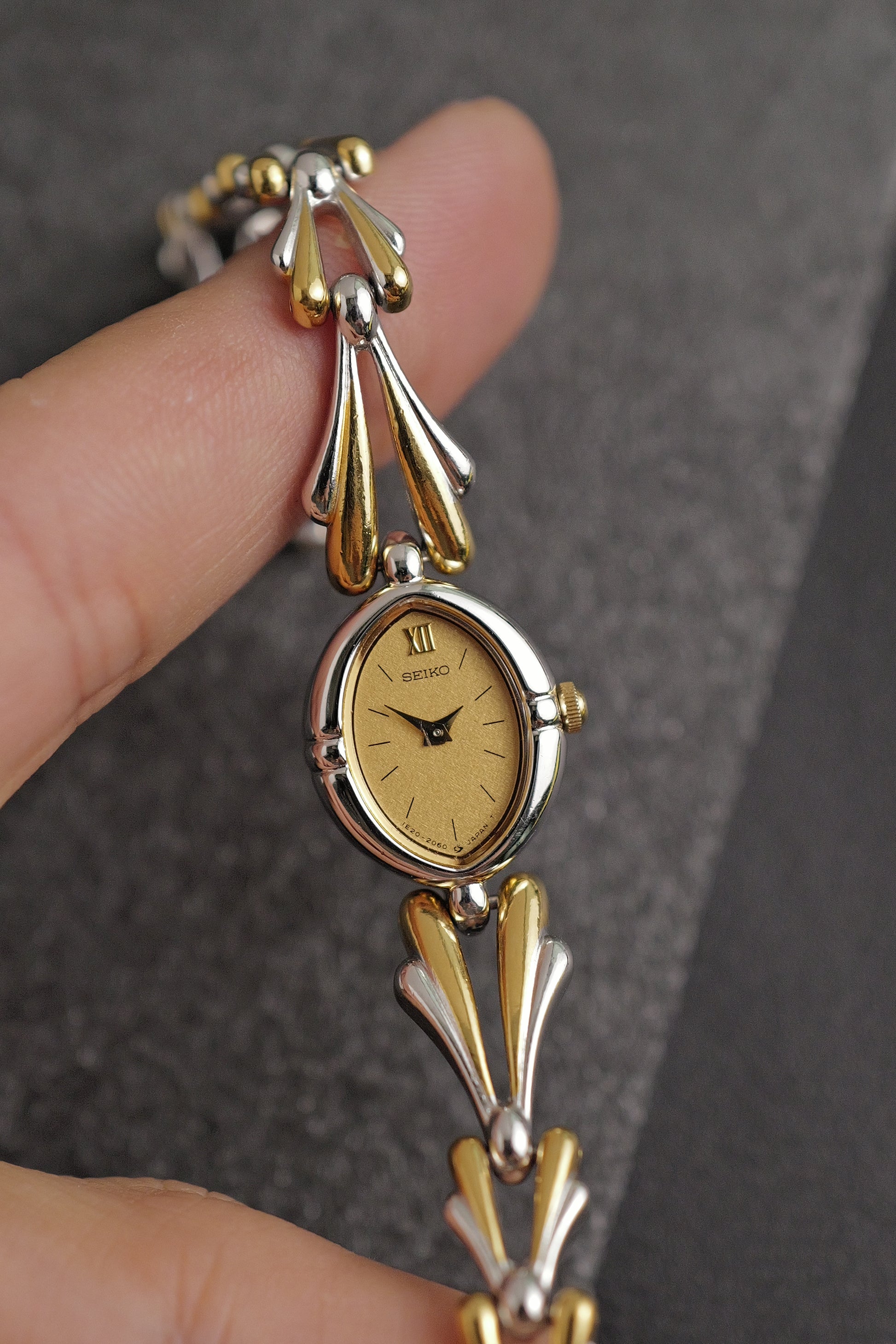 | Watch Summary | decided to call it the golden snitch as the bracelet looks like the quiddich snitch from harry potter. a 2 tone Finishing on the bracelet, with a textured golden dial. Comes with a length of 16cm. all links removable. Running on the ever famous 1e20 movements where all the most gorgeously produced seikos were on. |
