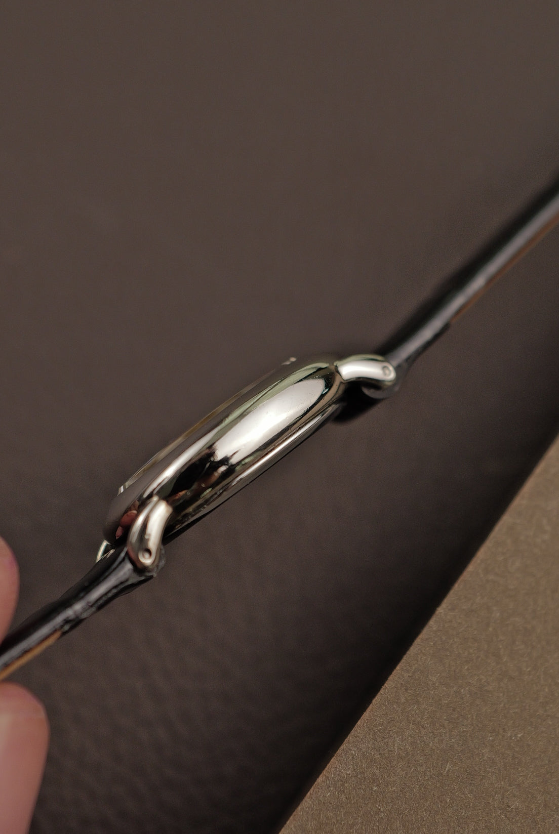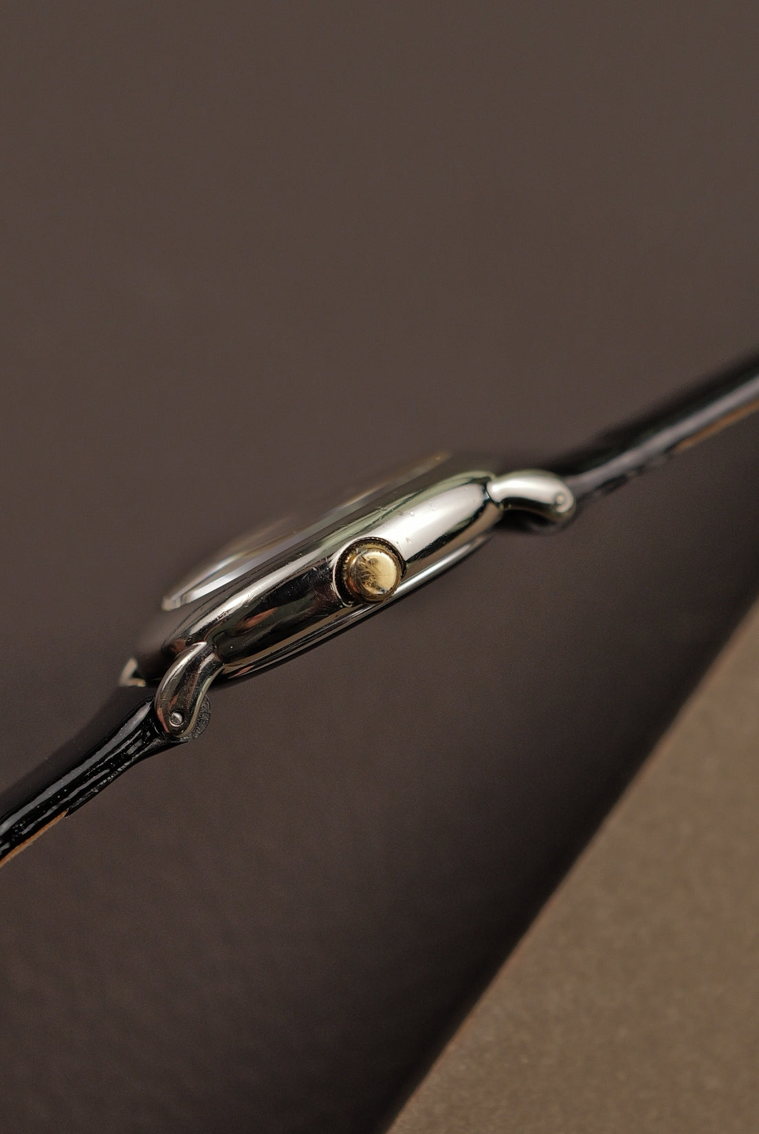 Watch Summary A beautiful bathtub shaped seiko, hence the name baignoire. More famously known on the Cartiers, the Seiko versions are extremely chiq and beautiful with its horn-like lugs and convex glass. This variation comes in a midnight blue with golden indices!