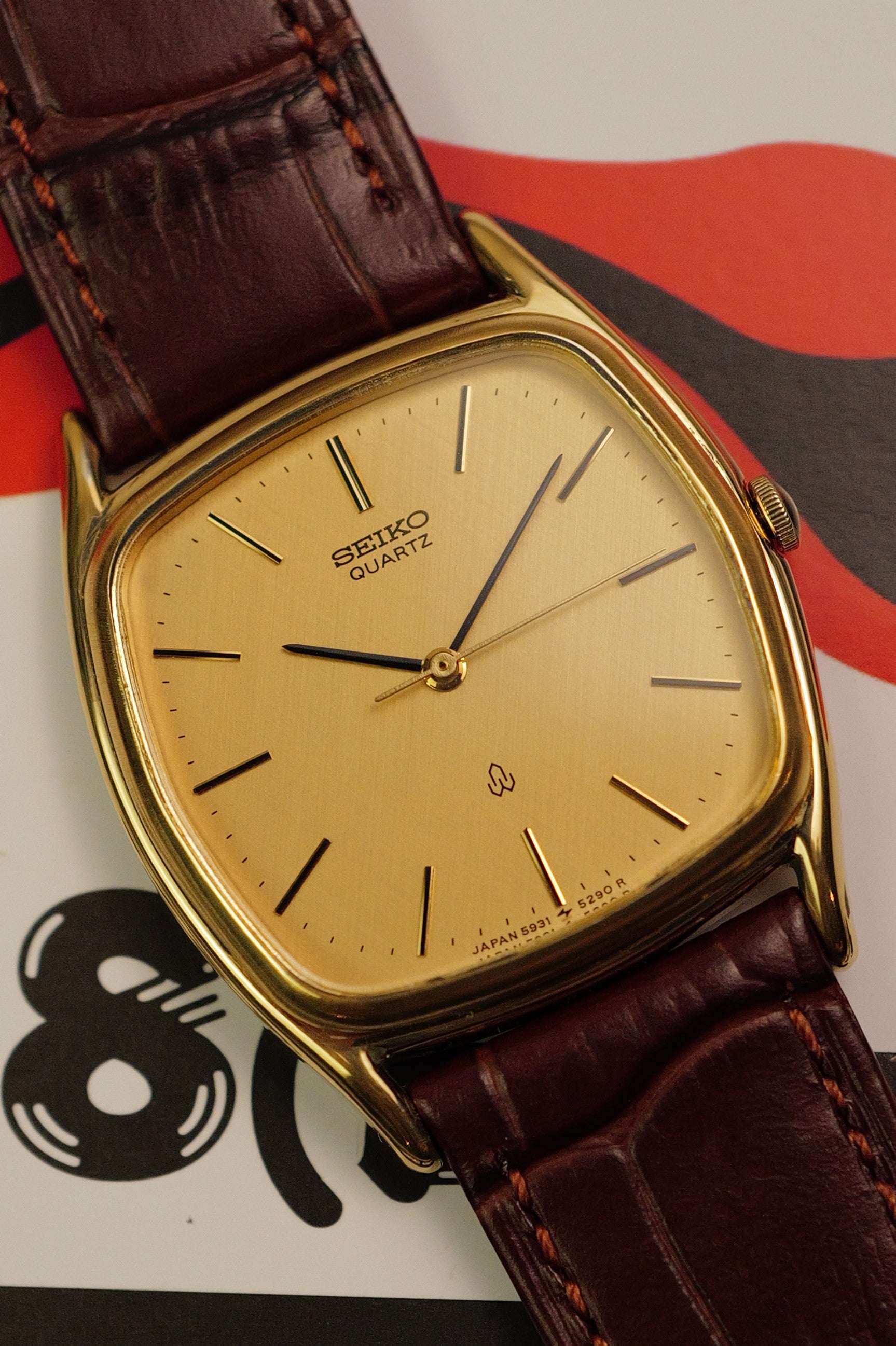 Seiko Quartz Tonneau Case Linen Dial 5931-5270 Circa. 1985