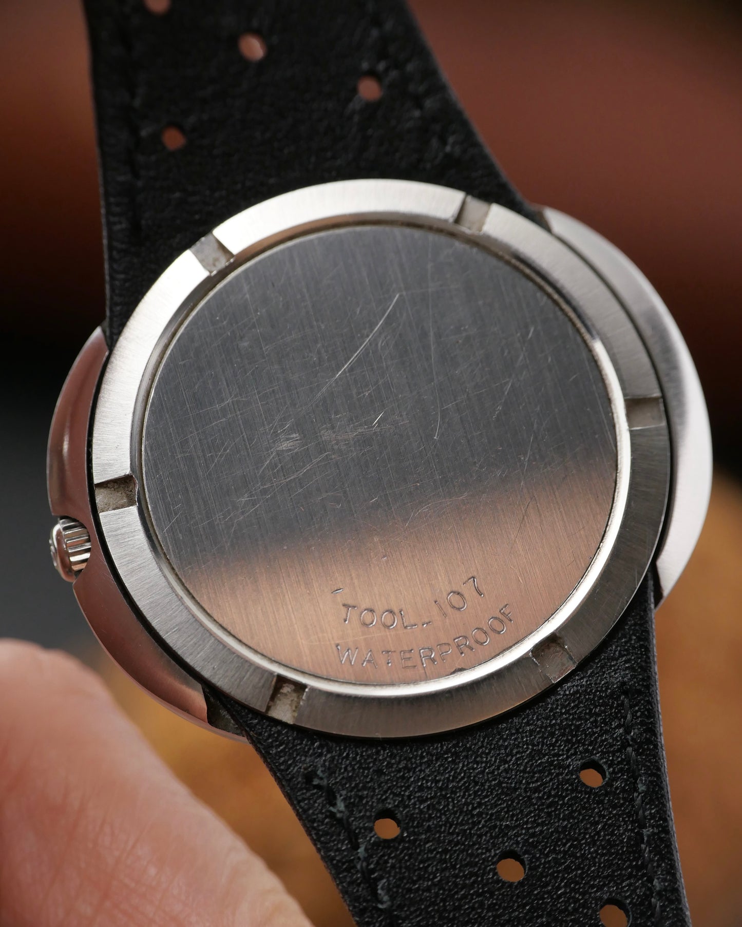 8.5/10, with visible signs of use. No signs of refinishing, just a little weathered by half a century, not a polishing machine. Original Omega-signed crystal in great shape with just a few microscopic marks. Crown may have been replaced but is Omega-signed. Dial, hands and printing are pristine with intact tritium lume plots that respond to UV correctly for age. New aftermarket strap and buckle with worn strap and original Omega buckle included. Movement in excellent health with near-spec power reserve, strong amplitude, negligible beat error, and accurate to ±10 secs/day averaged from 6 timegrapher positions.