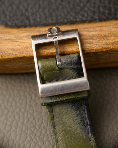 Perforated aftermarket black strap with 14mm buckle, and used green strap with Omega buckle (14 mm)