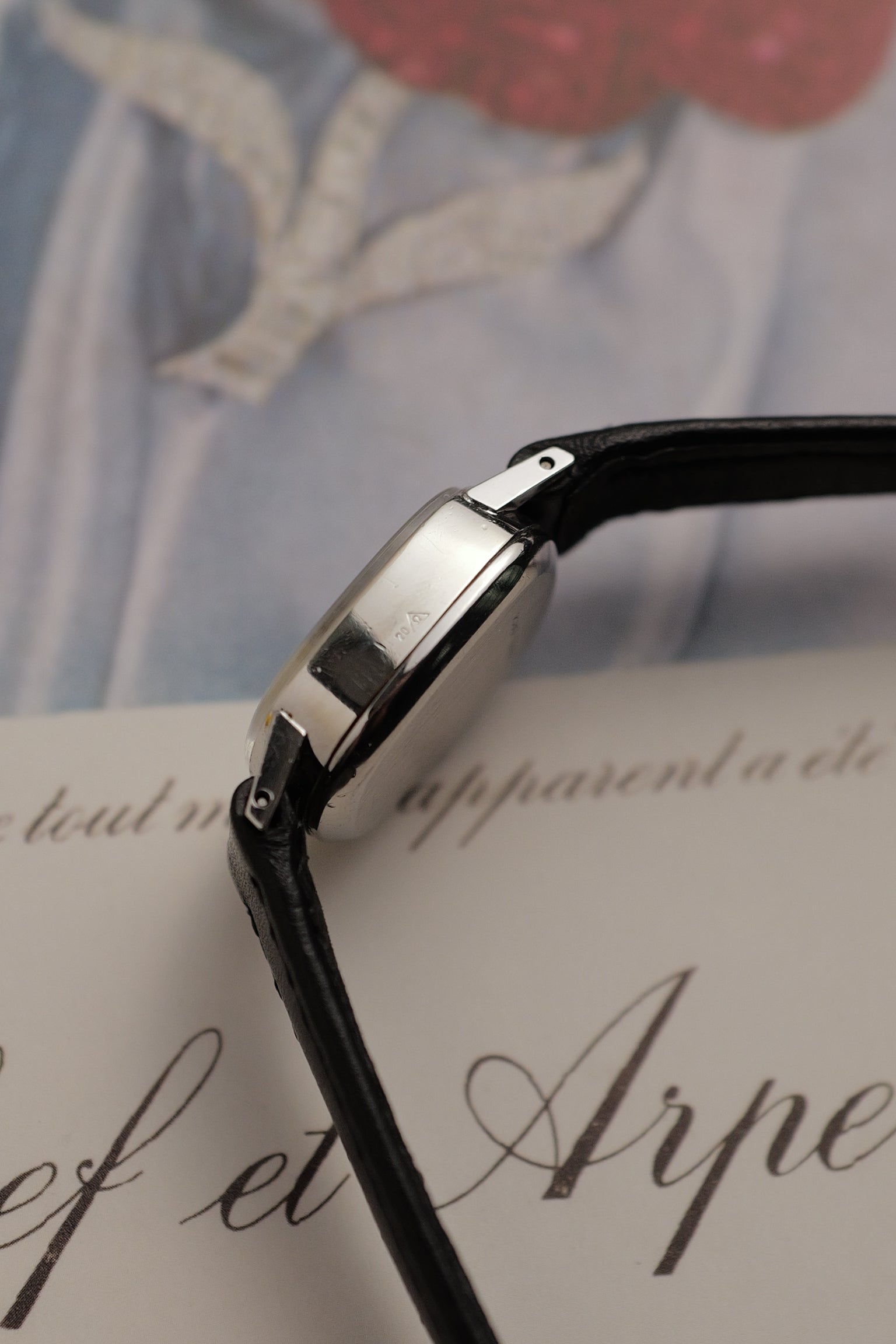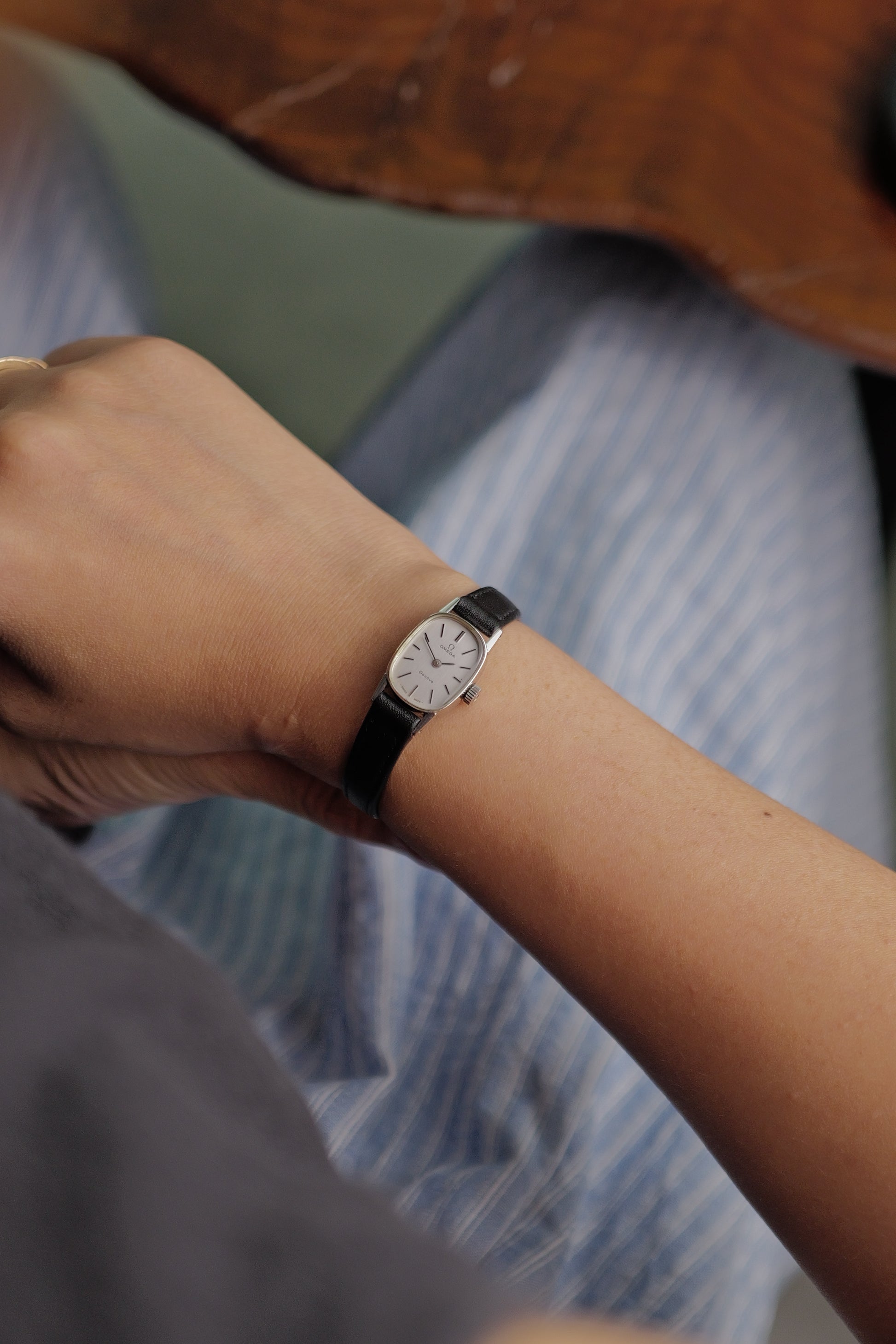 Rectangular polished silver-tone case with long sharp lugs. The dial is silver with a radial brushed finish and slim pencil hands. Kinda a late-modernist type of vibe, and i love it! Watch has no dial corrosion and acrylic glass is in excellent condition. Watch is a manual winding calibre and fully serviced on april 2025. Comes with an aftermarket strap and buckle. Replacement box provided. |