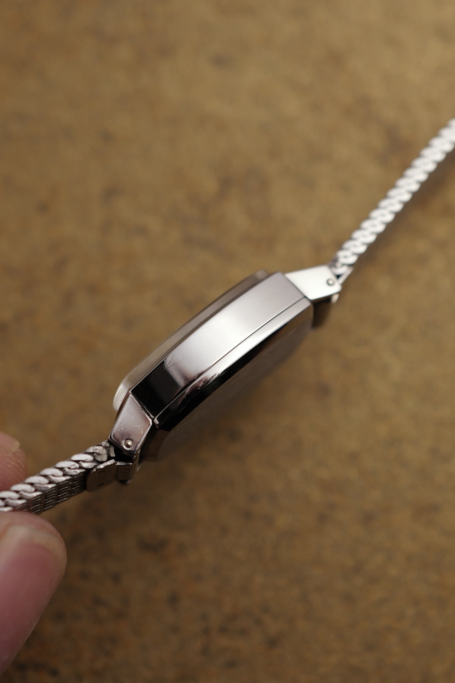 Watch Summary | Omega had the coolest things from the 60s! This tonneau-shaped case is stainless steel with a polished finish, paired with a silver mesh bracelet. Extremely long lugs which extends the overall tonneau shape. Best of all its comes with its original bracelet! Movement has been regulated to an average of +-20s/day |