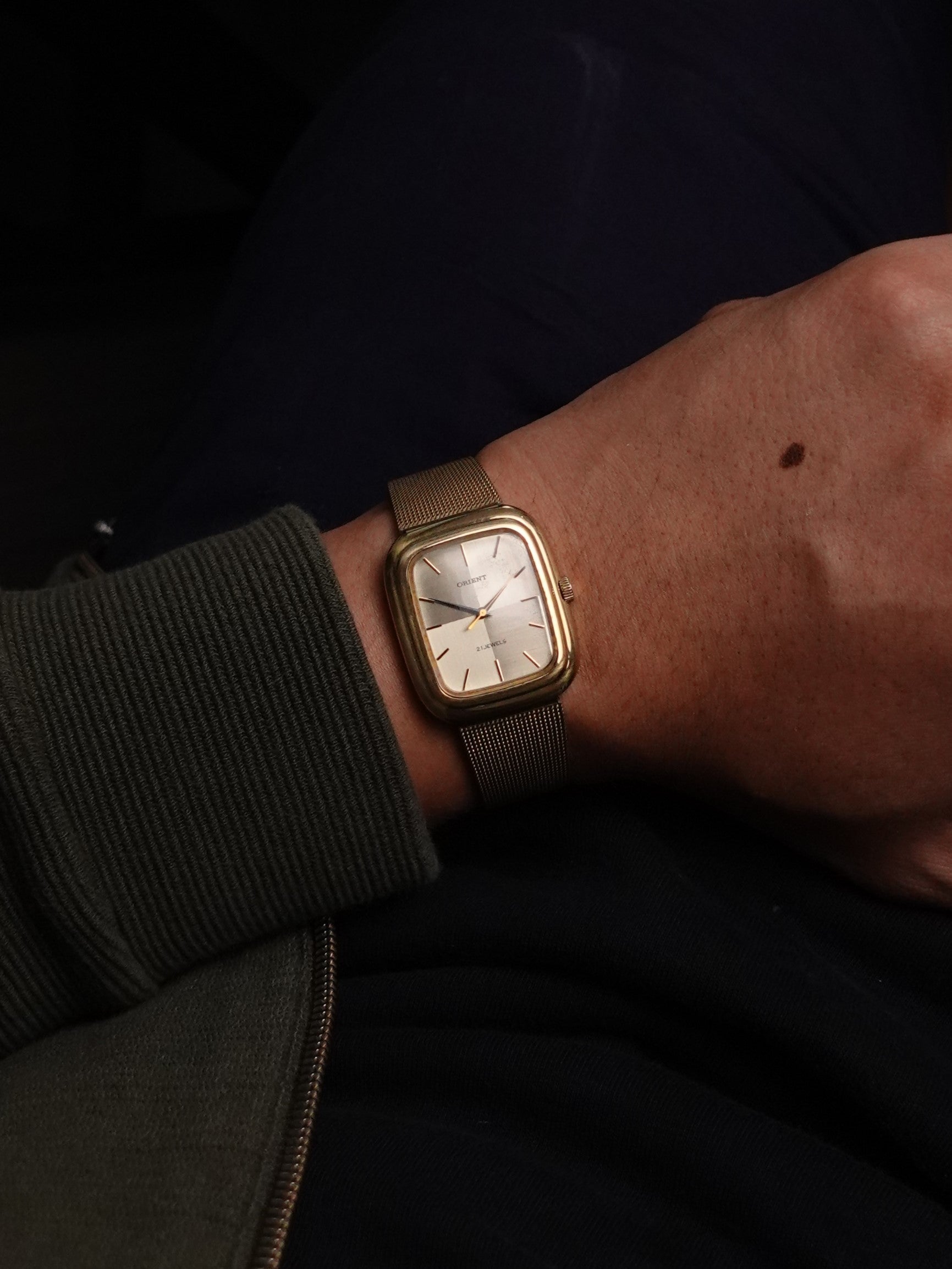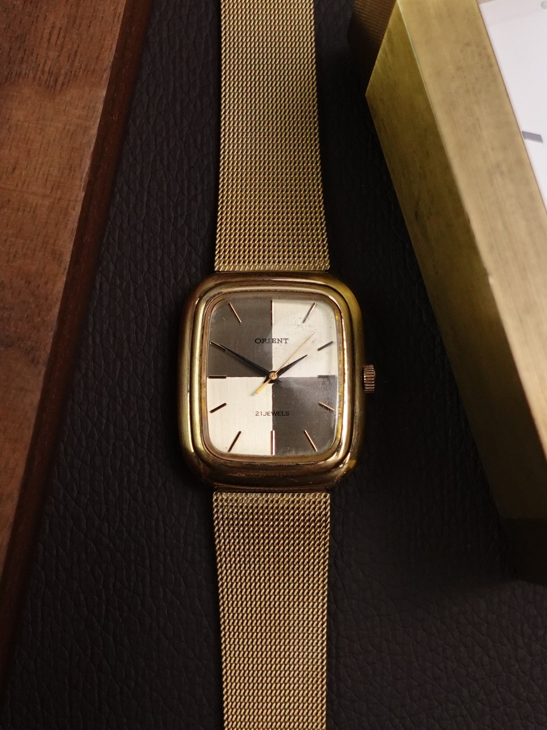 A never before seen orient in my books! Beautiful Sunburst dial with a checkered design .Manual winding movement which would meant this watch was before the rise of quartz.