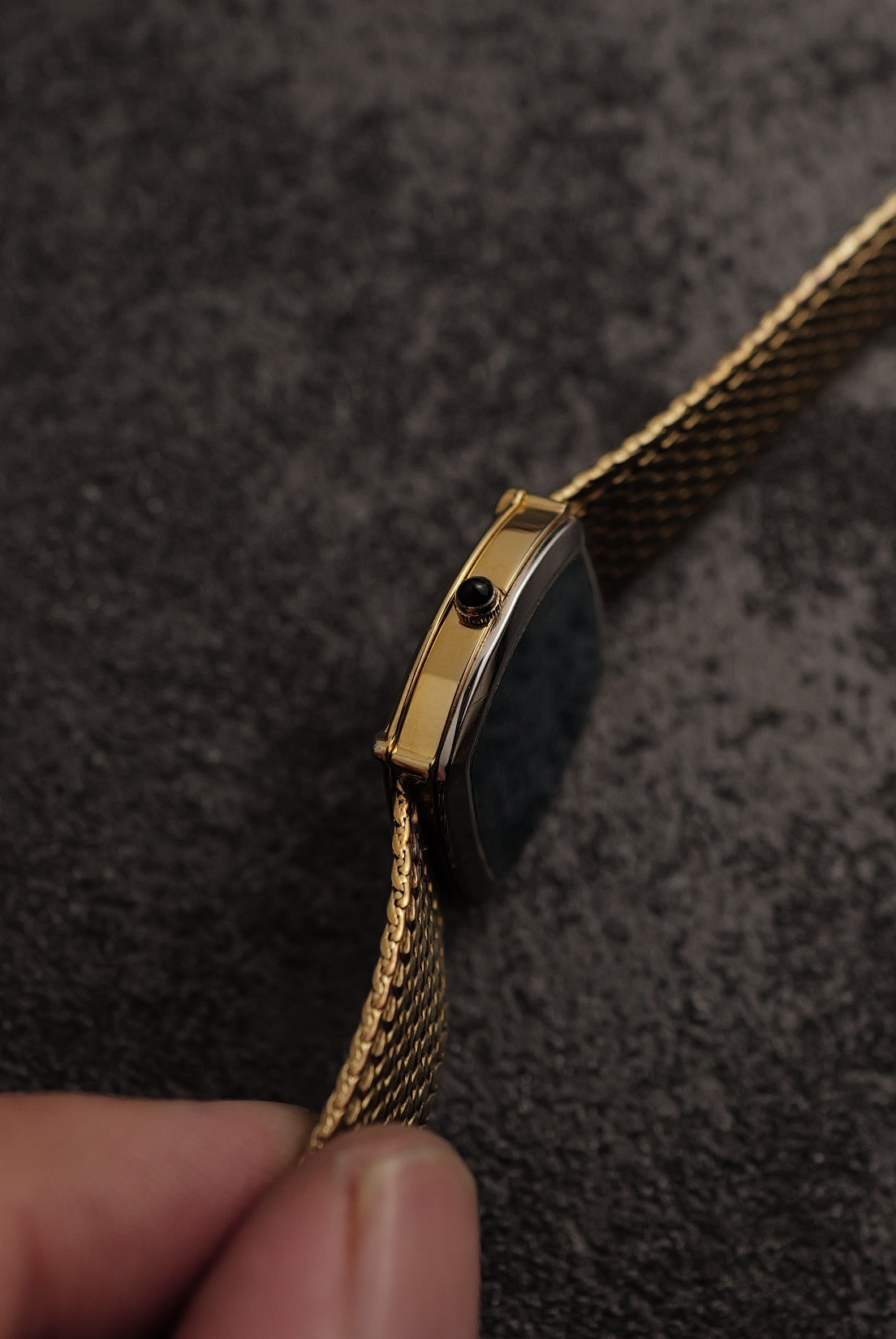 Watch Summary | More cut to size bracelet pieces please? A beautiful exceline with a cushion case, with a slight funky step bezel design in it. a woven bracelet design which requires cutting (so dm me your wrist size if you're buying), size at 15.5cm Original caseback sticker still attached. |