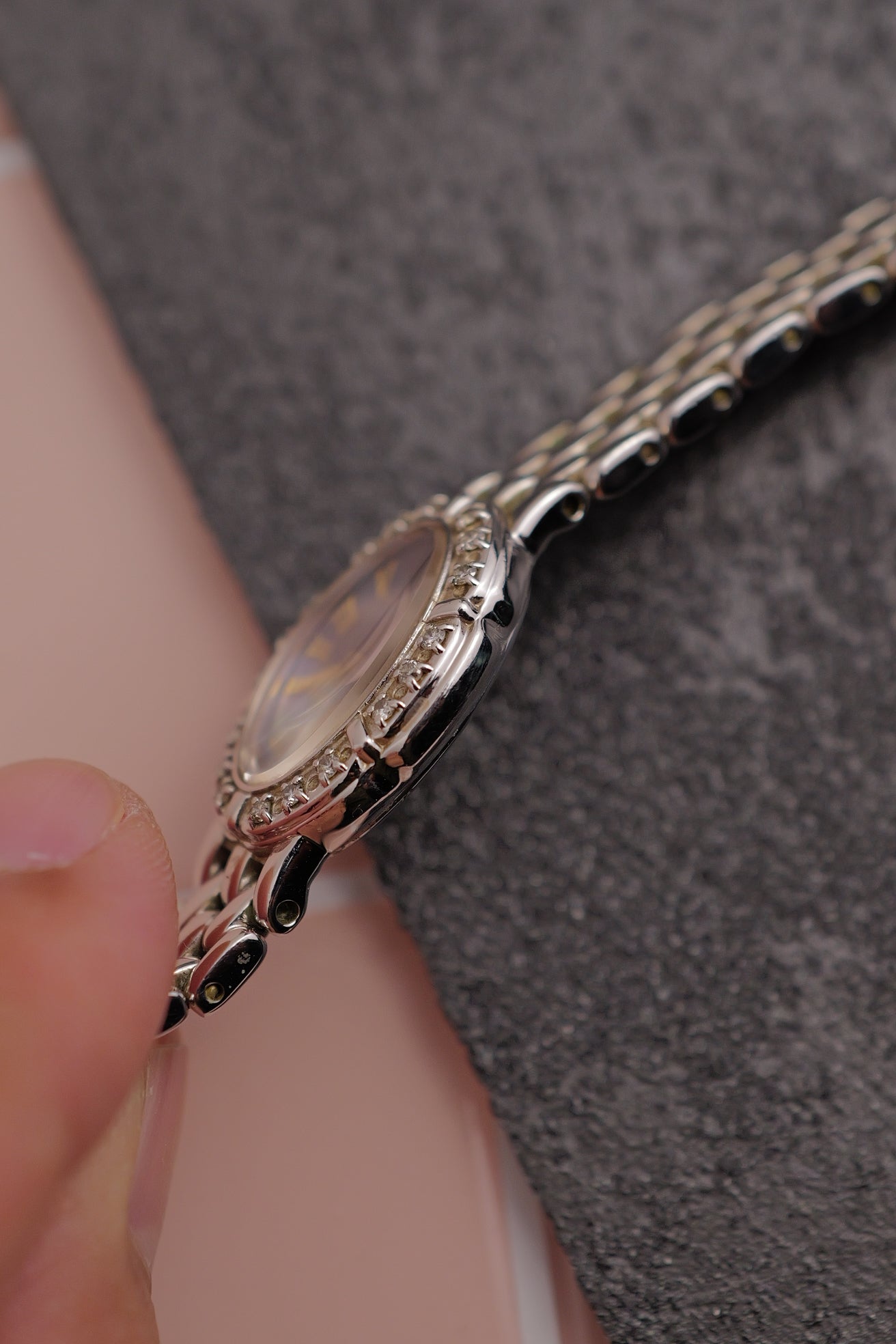 Watch Summary | Another curation of the rarest of the rare. A seiko exceline with mother of pearl dial and real diamonds for the bezel. Extremely striking because the numerals are in gold. Piece comes with extremely long links at 17cm. |