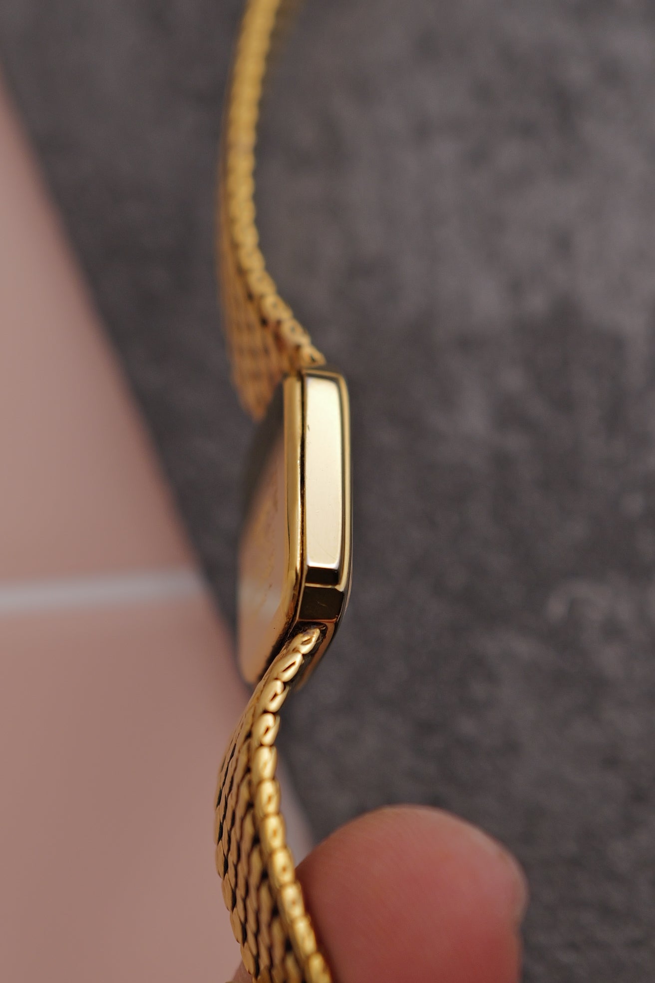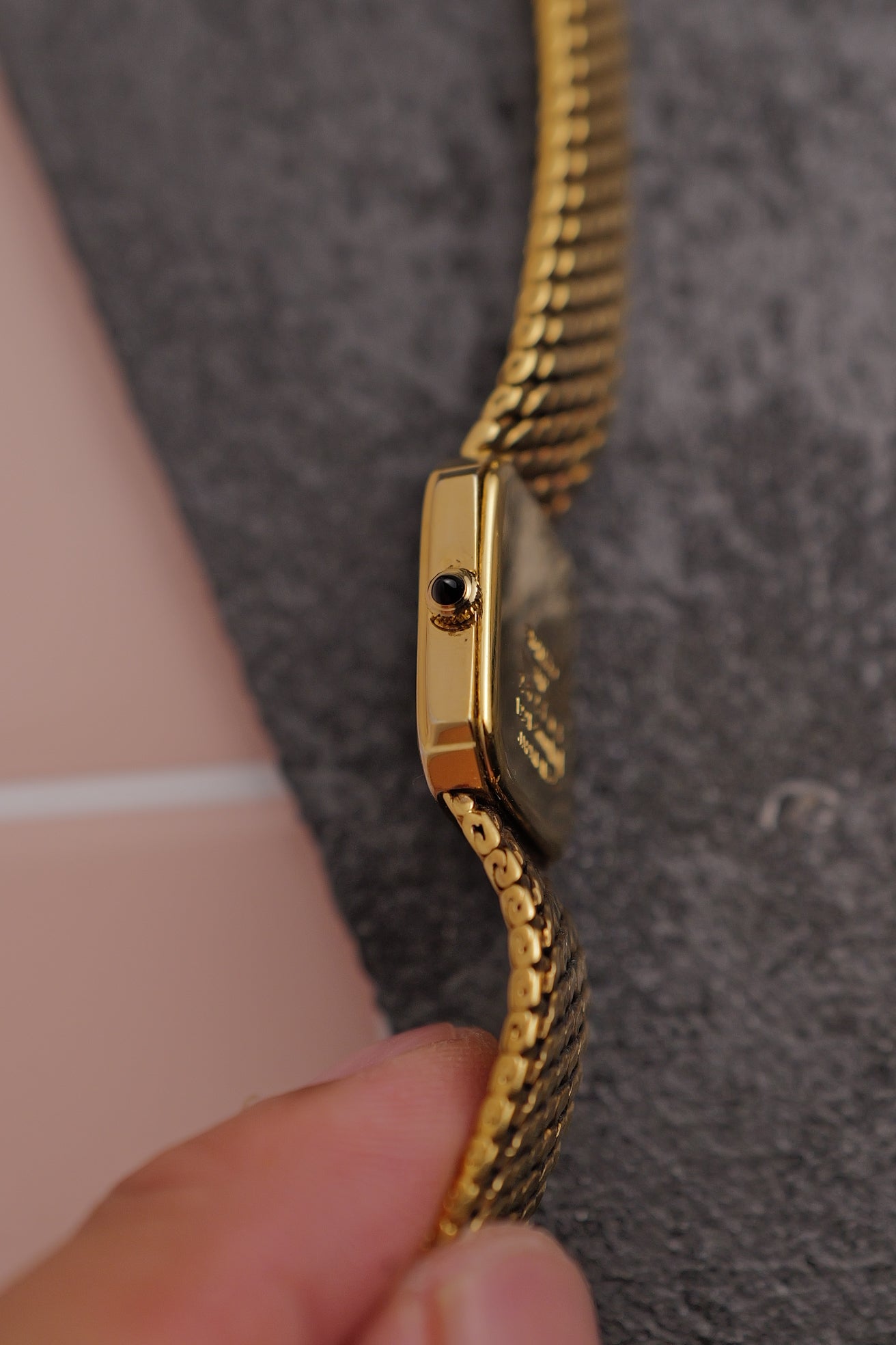 Watch Summary | A "Snowflake" dial exceline on a tank step bezel case. Another cut to size bracelet beauty, with a tightly woven bracelet design. comes at a wrist size of 16cm at maximum. |