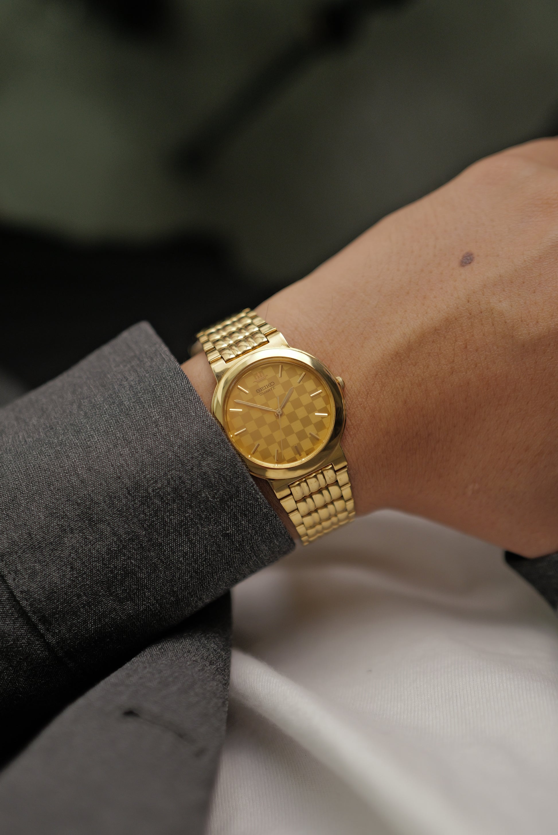 Watch Summary | A Very unique chessboard style seiko galaxy, during a time when seiko was exploring more funky dial options. The Seiko Galaxy was a very short lived seiko colllection which played with the idea of funky and whacky dial design. This piece is a chessboard design, which has individually reflected cubes on the dial. |