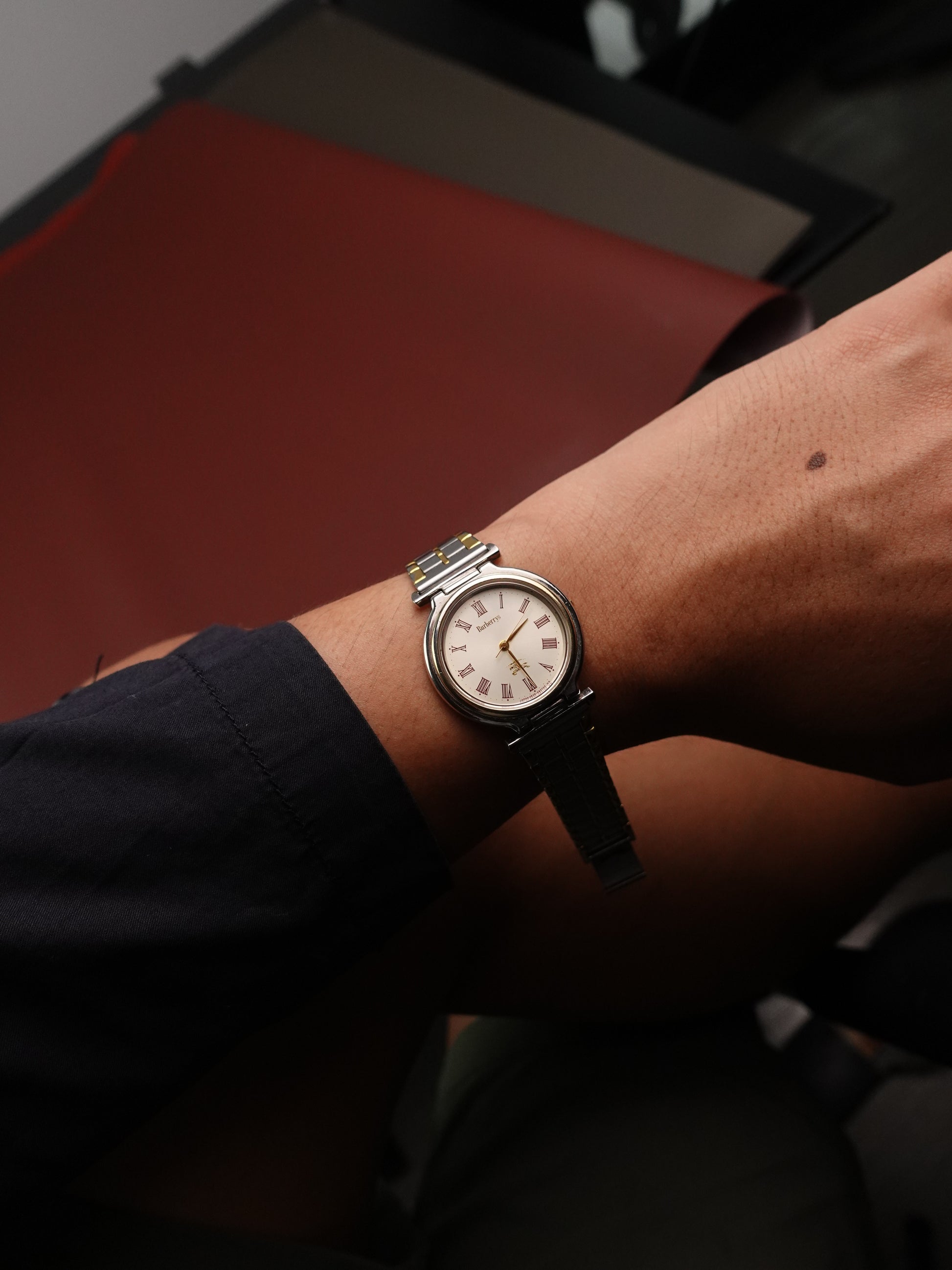 Burberry Ladies T-lugs red roman numeral 2 tone