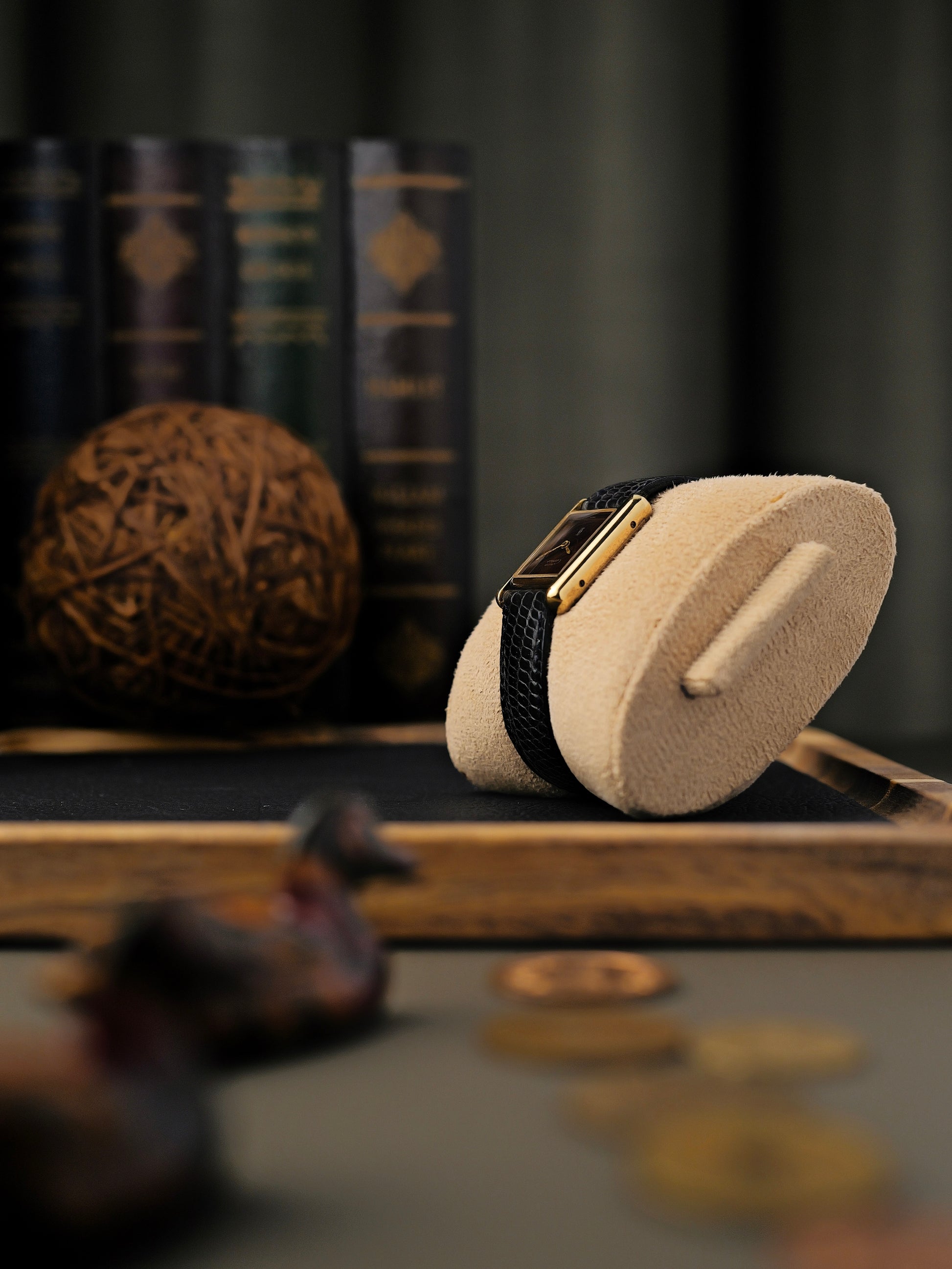 The importance of Must de Cartier Tanks is often overlooked. They were instrumental in saving Cartier 50 years ago when the economic boom of post-WWII France faded, and with it, demand for luxury. Further, cheap mass-produced quartz watches were flooding in from Asia. Cartier’s solution? Make accessible versions of the (otherwise full-gold) iconic Tank LC but in gold-plated silver (so still fully precious metal), and fitting them with Swiss quartz calibres. This took the market by storm and kept Cartier’s watch business afloat, unlike much of their European counterparts. This historical piece is in the small size, with a seldom-seen “wood grain” lacquer dial, golden sword hands, and no indices to showcase the dial fully. Over 90% were quartz, but this one’s manual. Classy, classic and trés chic!