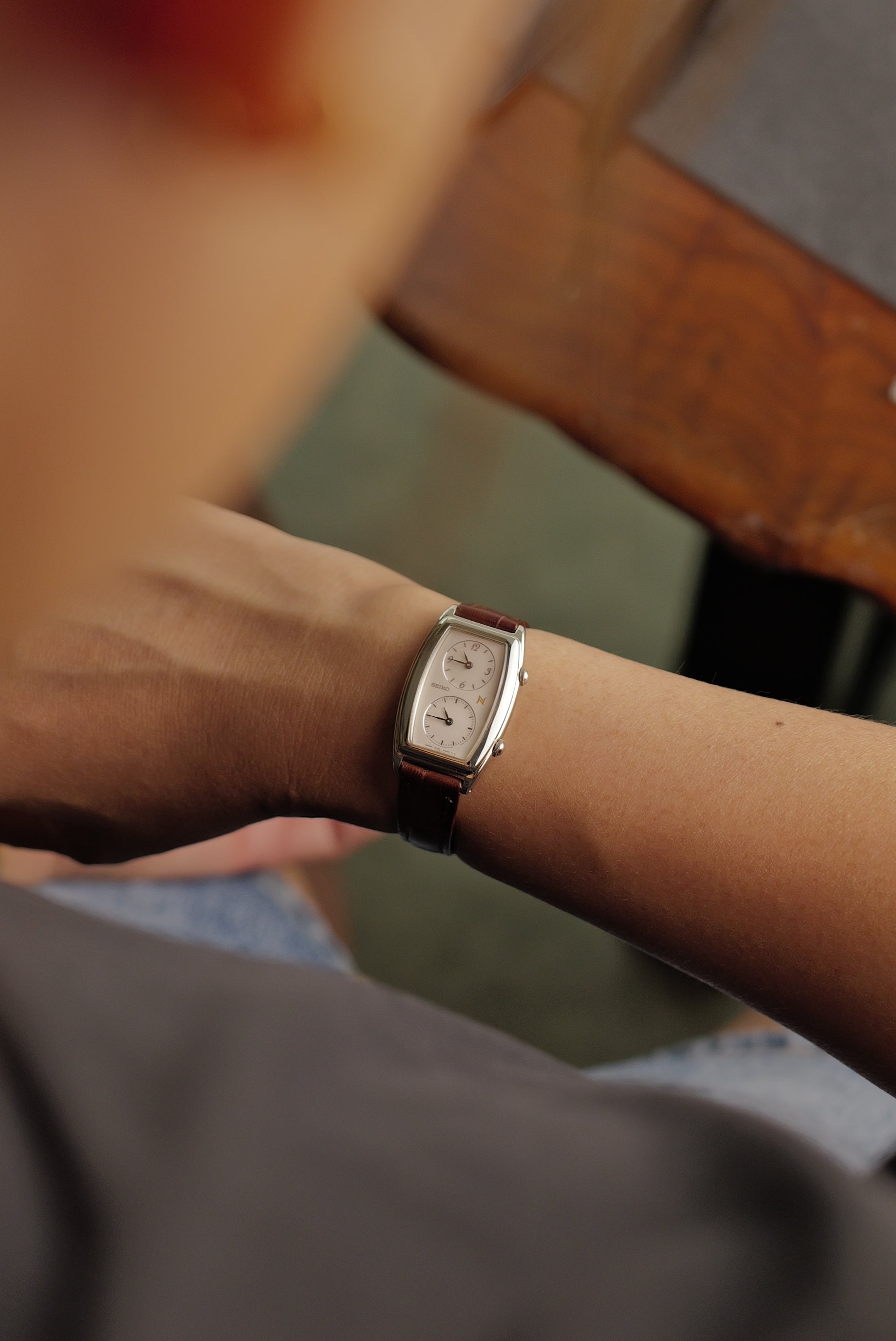 Seiko "Tonneau Dual time" Circa. 1995 in steel
