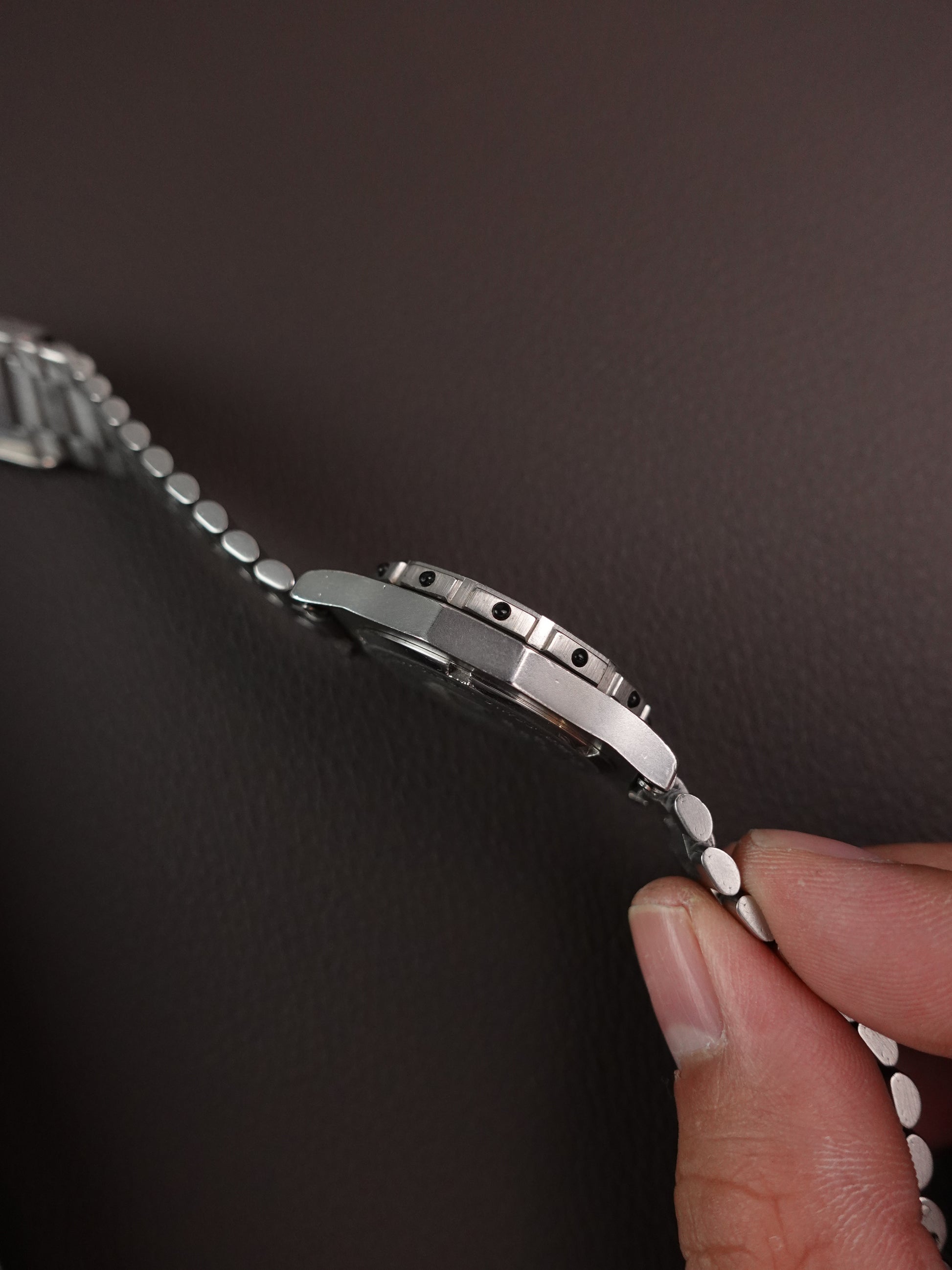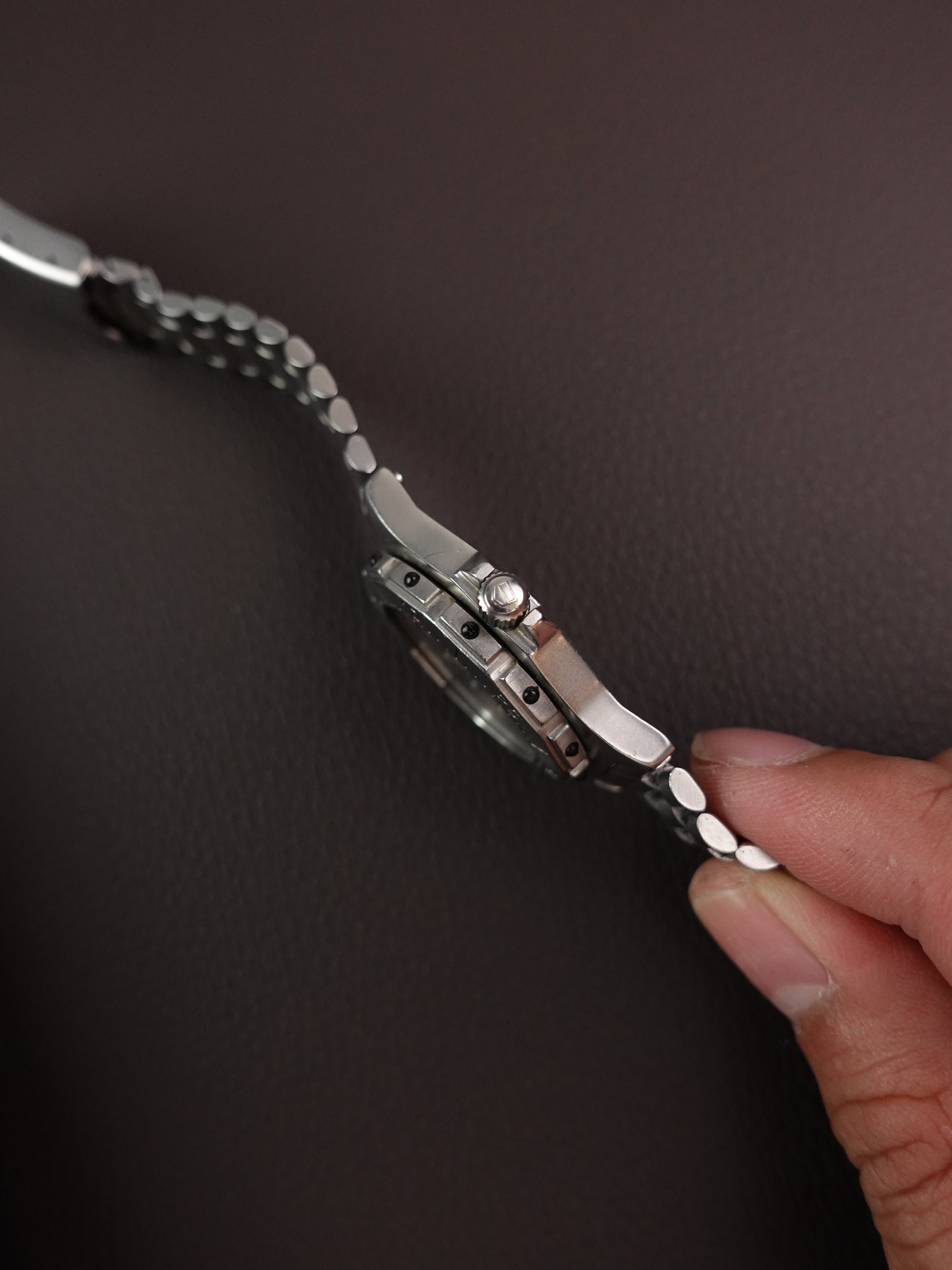 This variation is the MID-SIZE variation, hence at a diameter of 34mm. watch is worn as seen from all the scratches on the bezel. please take note that bezel DOES NOT click and spins bi-directional. Can be fixed with a new steel wire but i have not done it as i do not have the machinery to fabricate it. Max wrist at 17.8cm