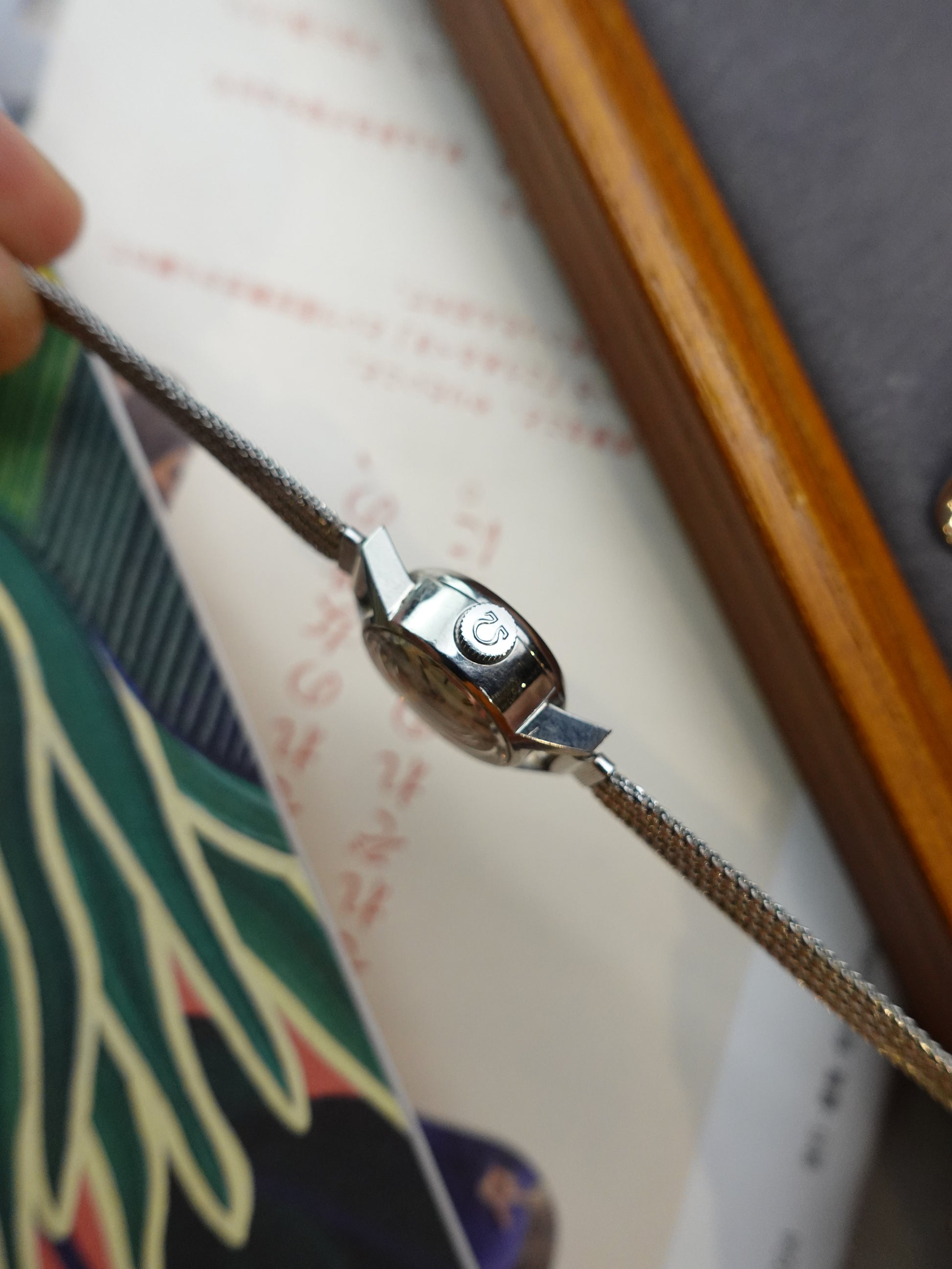 a early 60s omega, indicated by the faceted glass design around the corners of the dome. comes on a vintage bracelet design, which i feel its better suited than strap.