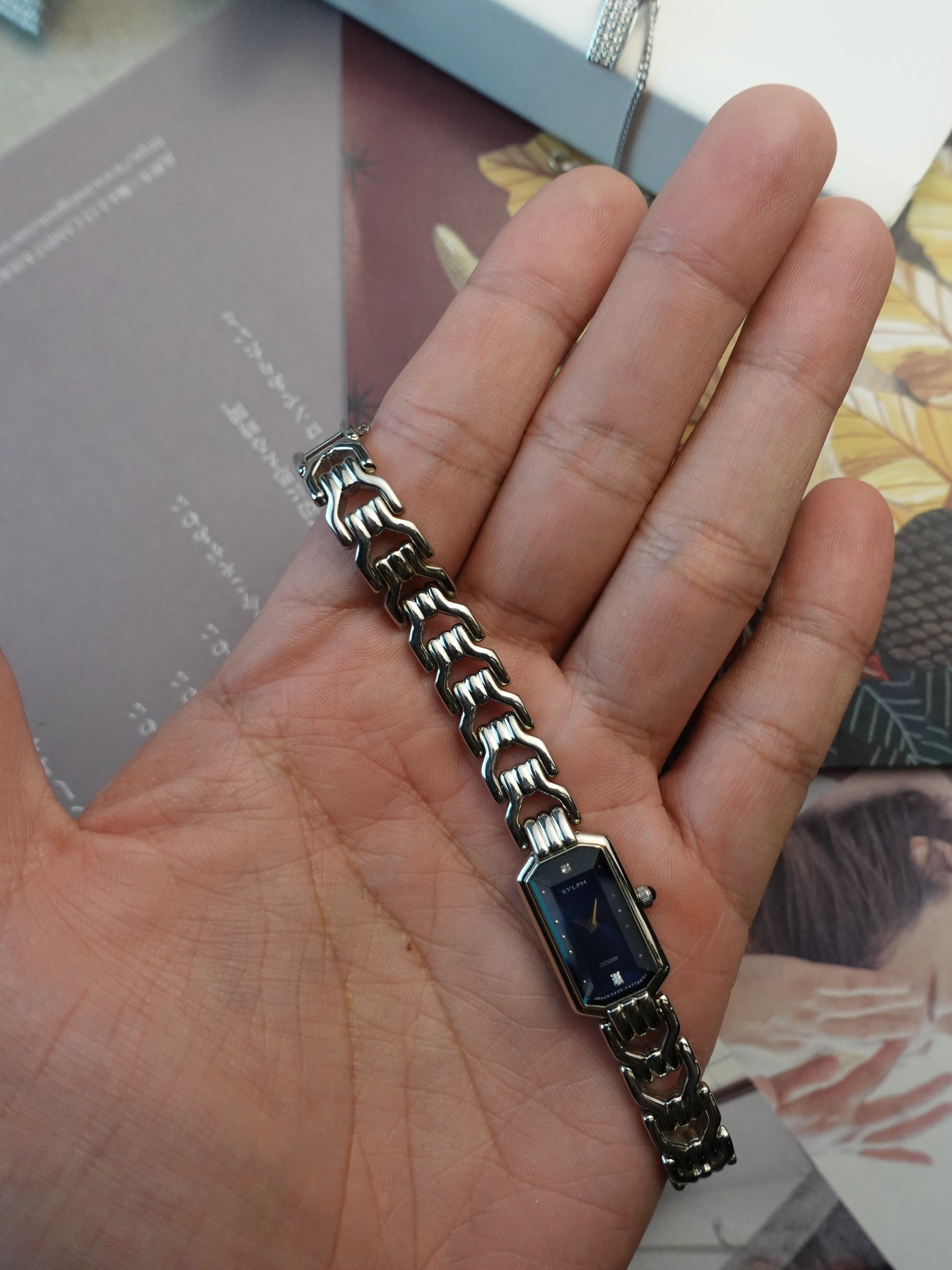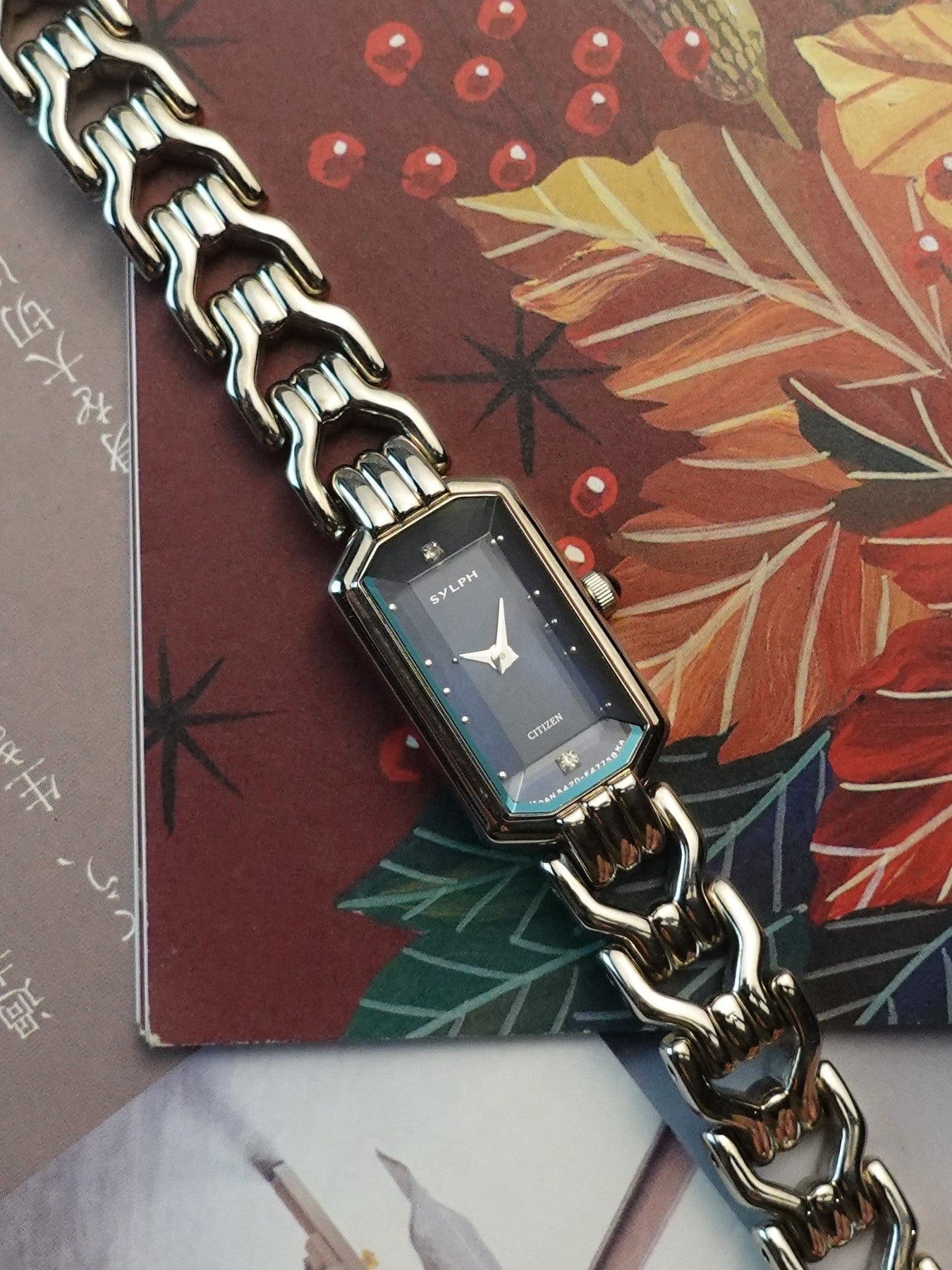 the iconic citizen sylph, the flagship bracelet series for citizen in the 80s. A beautiful steel bracelet with 2 gemstones on the 12 and 6 o clock.