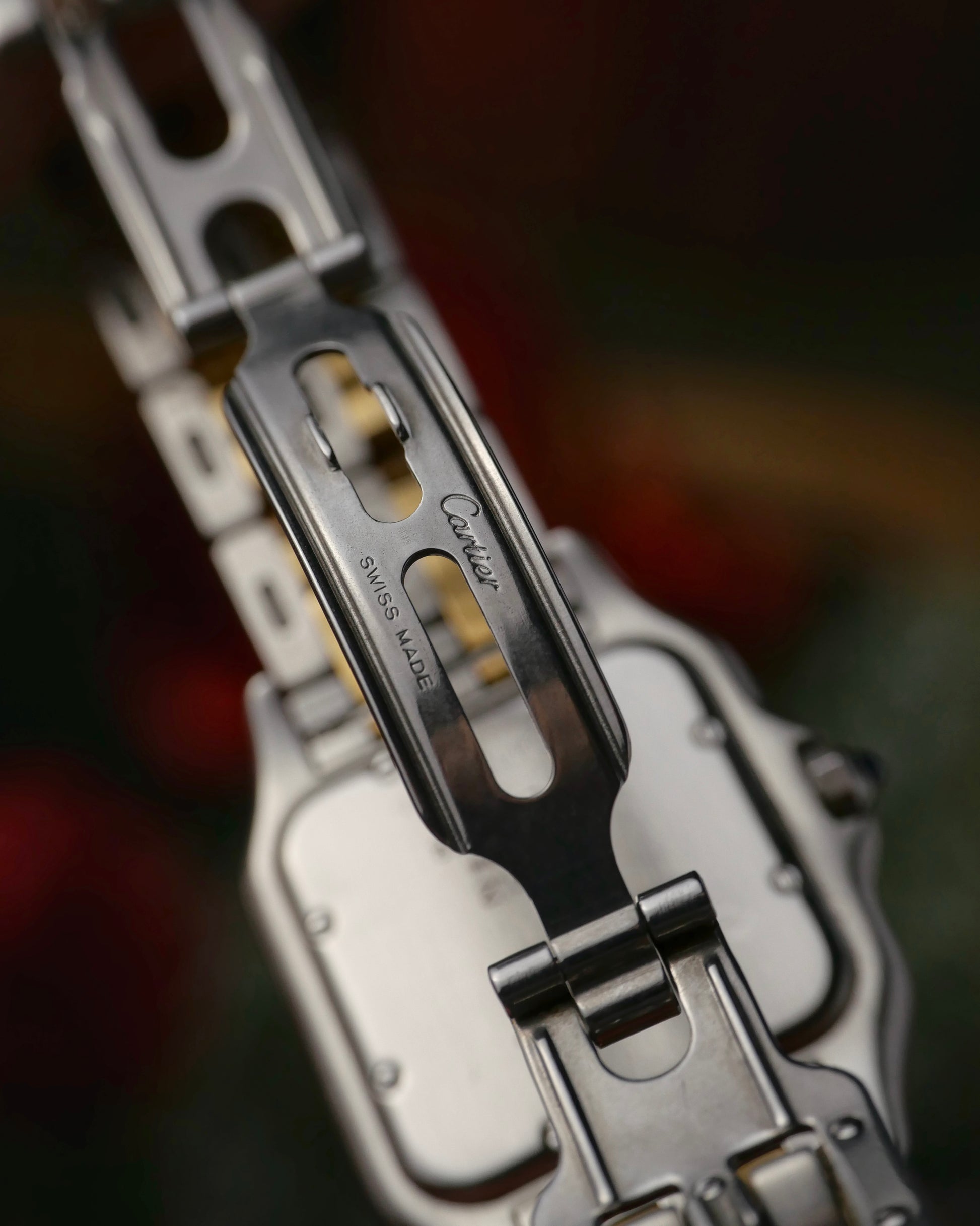 Original Cartier 5-link “two row gold” steel bracelet with concealed butterfly deployant (links fit up to 18cm wrists)