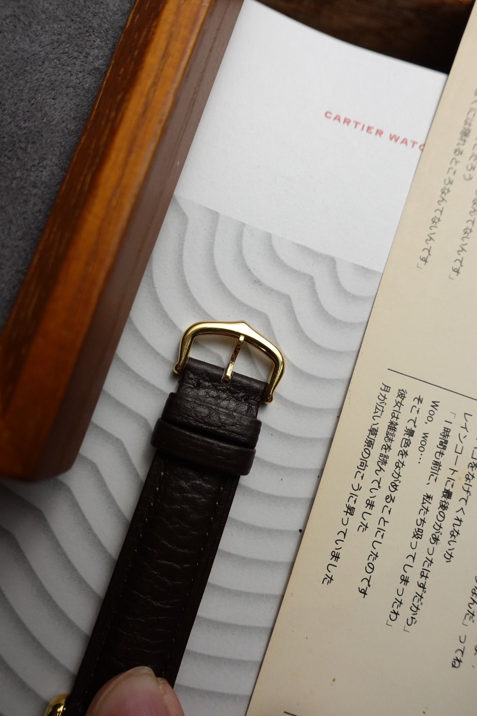 A beautiful Cartier tank with a new classic dark brown lychee textured strap which comes default on most modern Cartiers now.